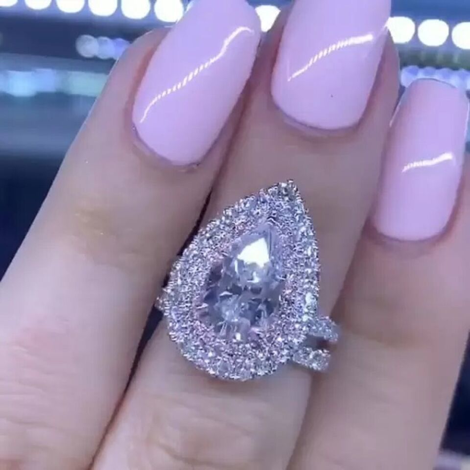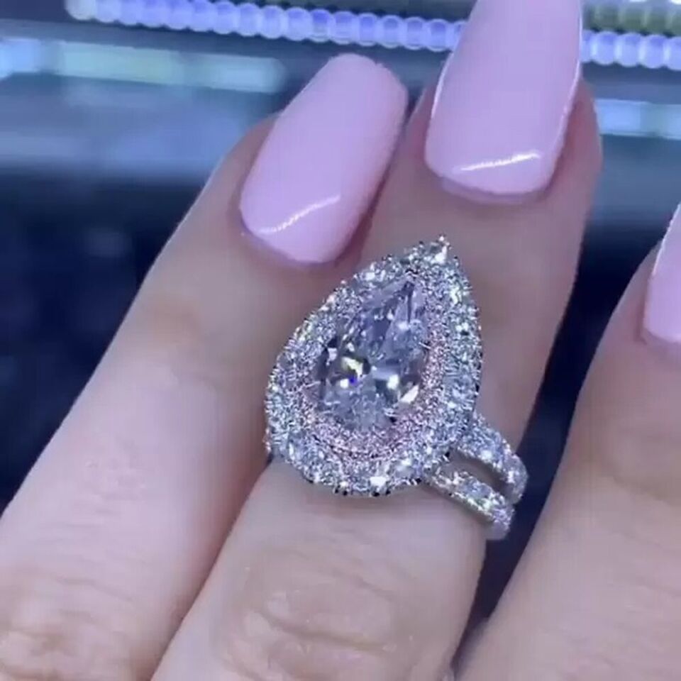 14K White Gold Over Bridal Engagement Ring Set 3 Ctw D/FL Pear Cut Moissanite