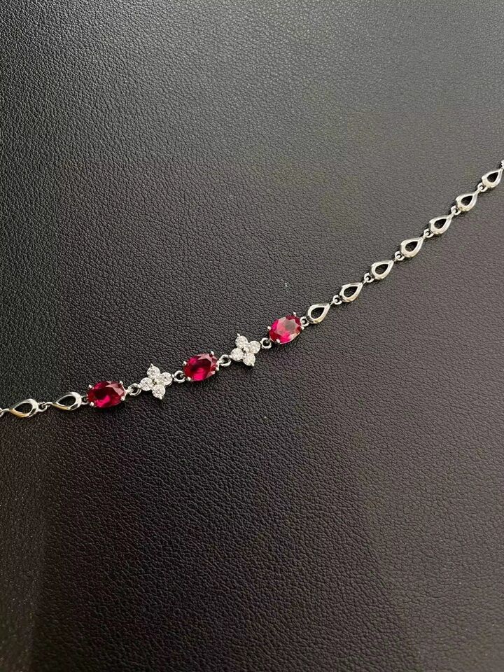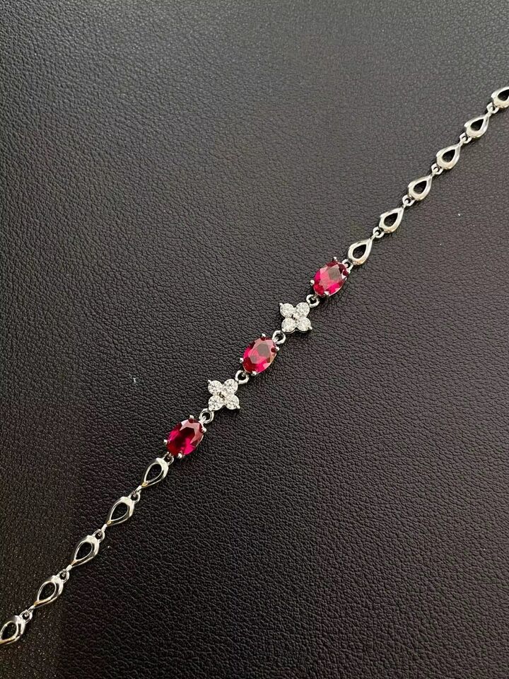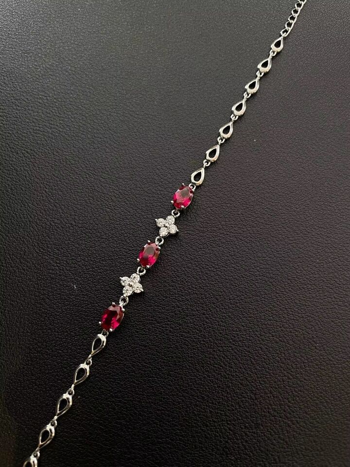 3.20 Ctw Lab Created Ruby & Diamond 14K White Gold Plated Women's Bracelet 8"