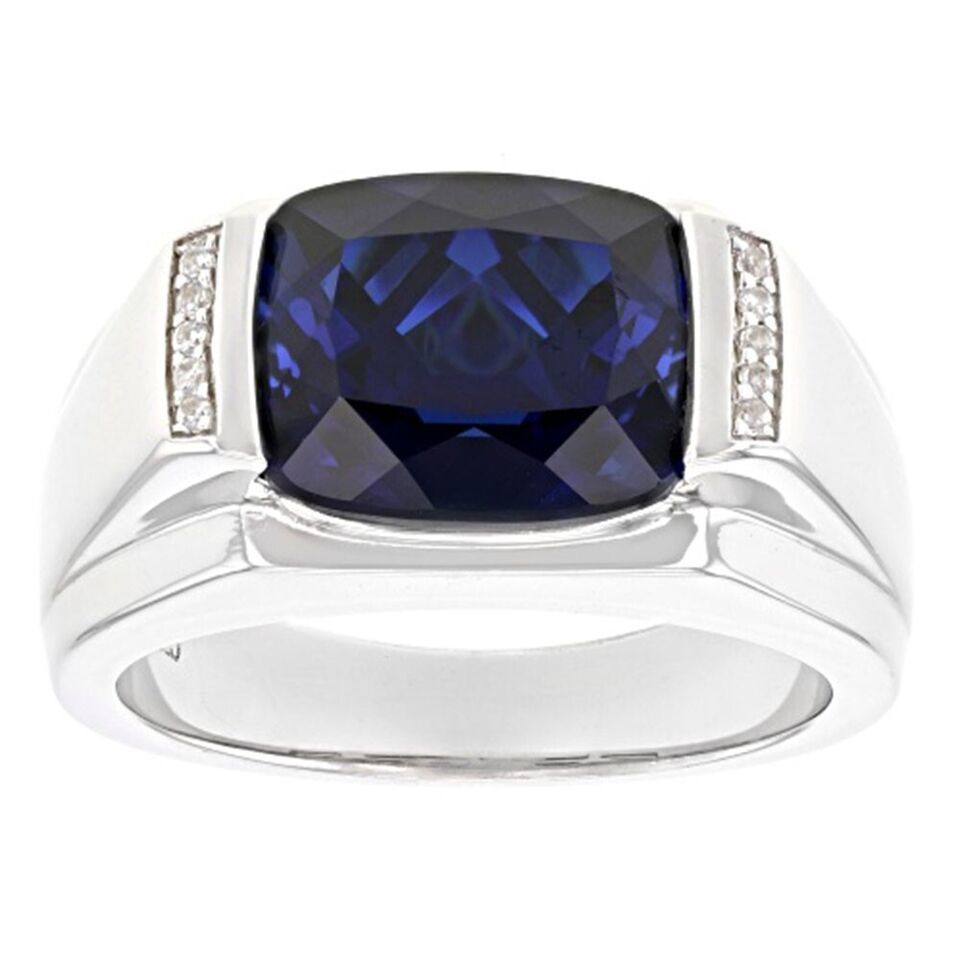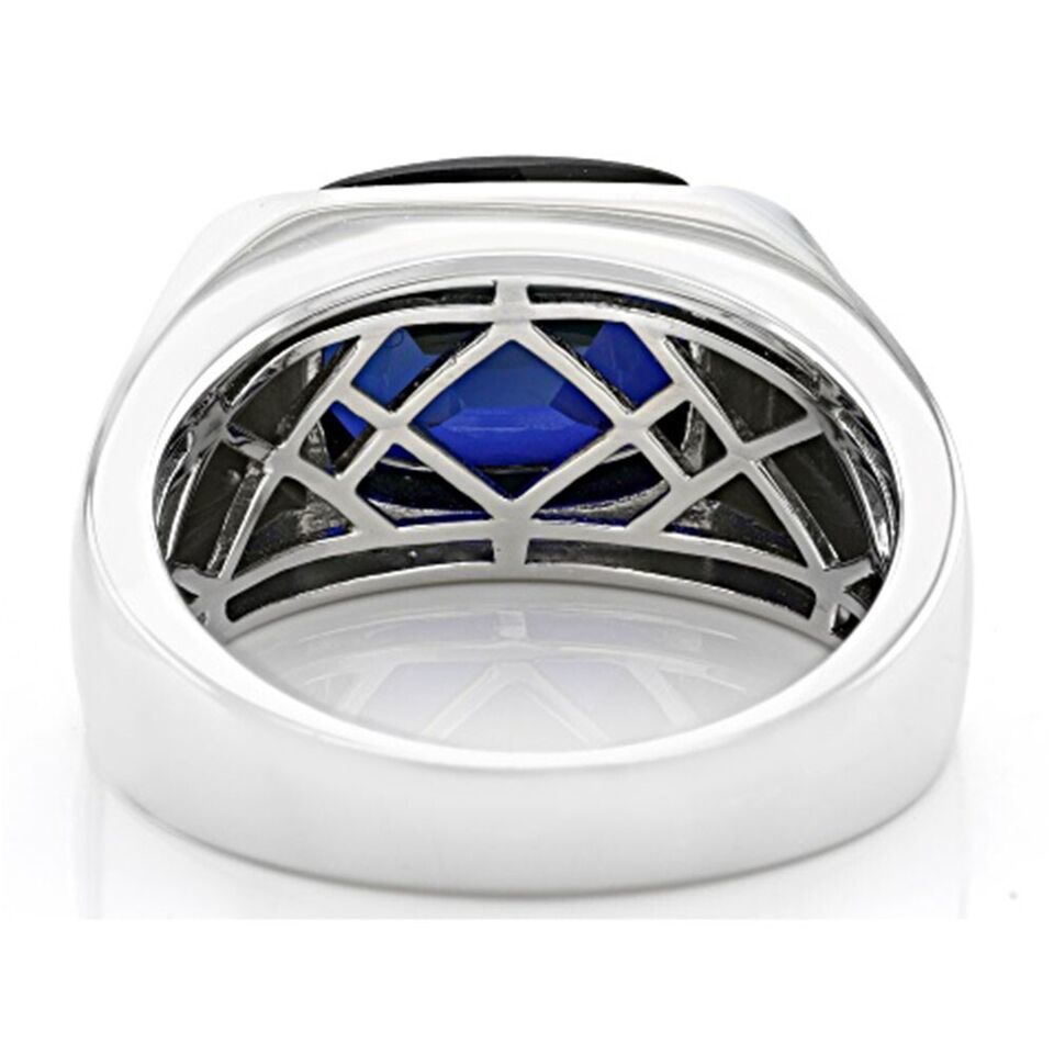 5.63 Ctw Cushion Cut Blue Sapphire 14K White Gold Over Solitaire Band Men's Ring