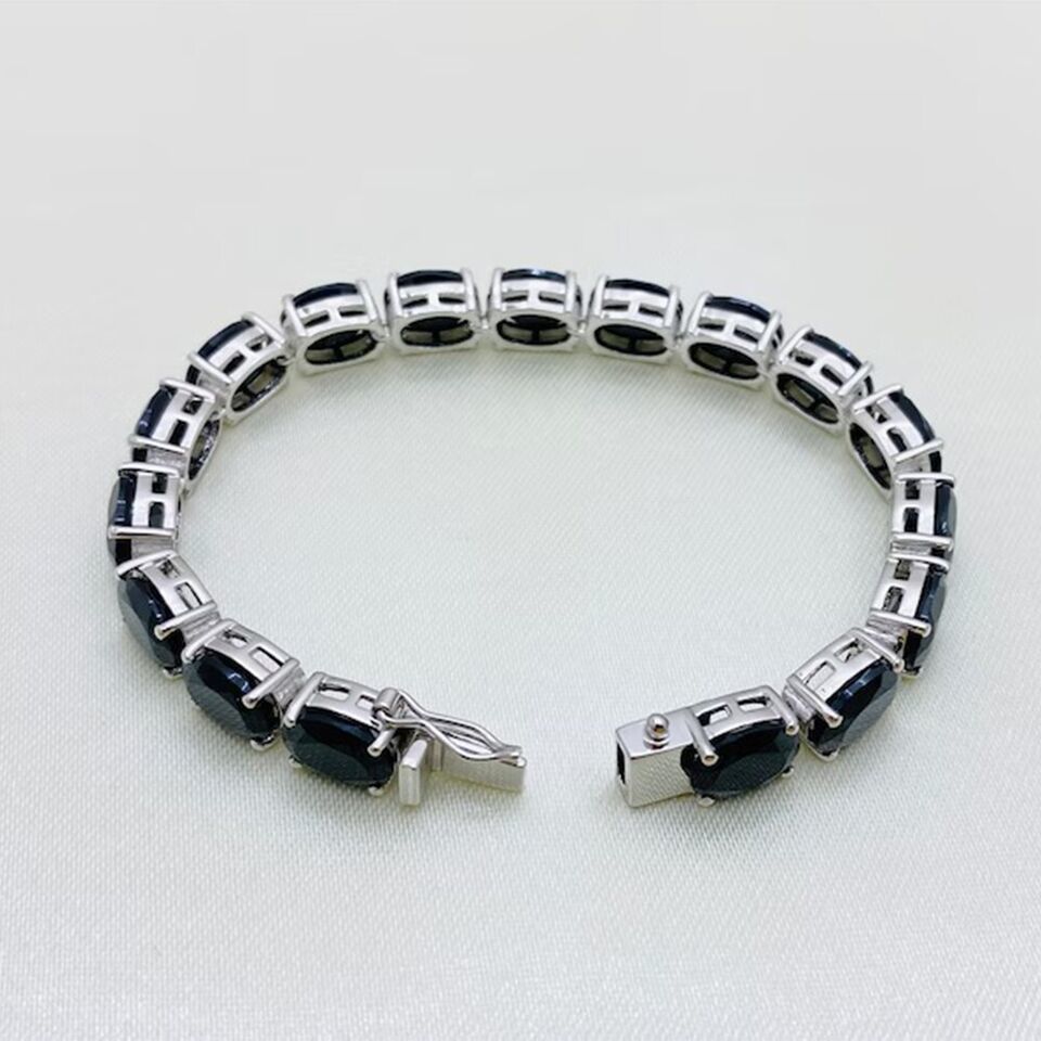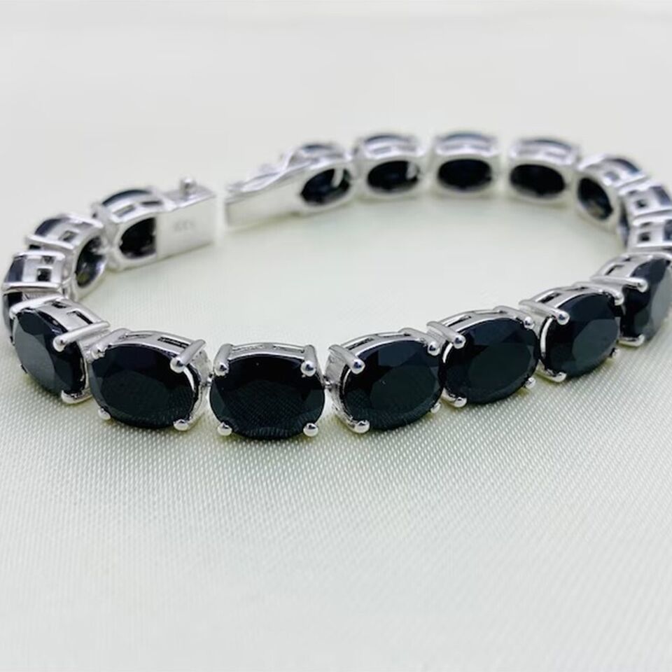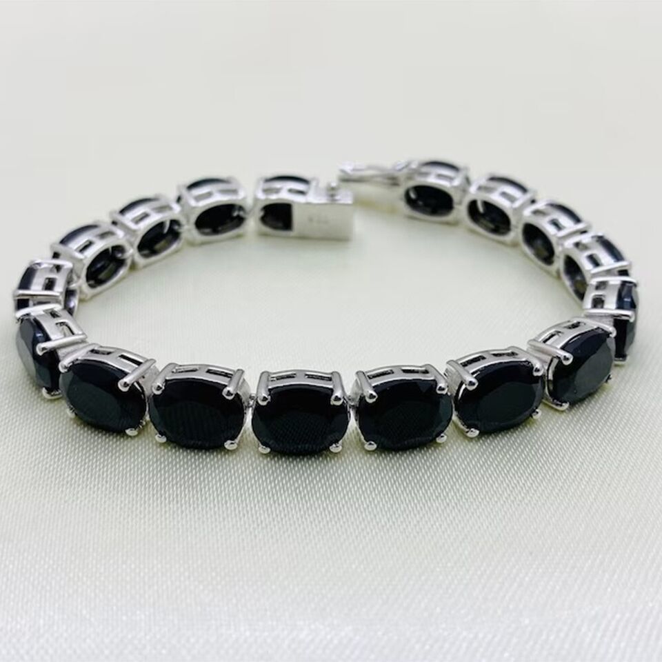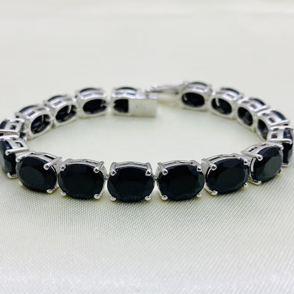 17 Ct Lab Created Black Spinel 14K White Gold Plated Tennis 7X5 MM Bracelet 7.5"