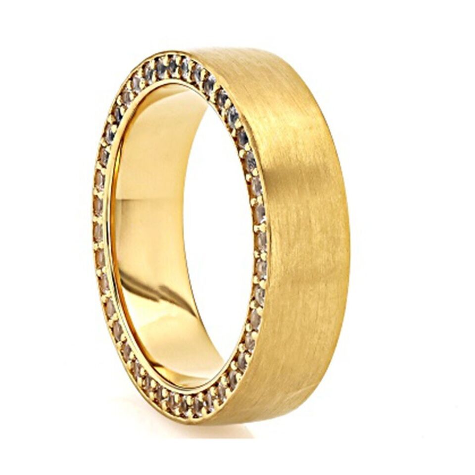 1.36 Ctw Round Cut Moissanite 14K Yellow Gold Plated Solitaire Wedding Band Ring
