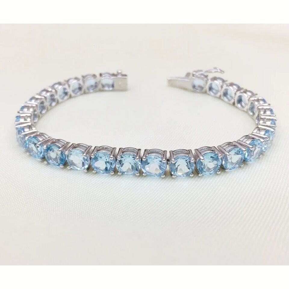 21.60 Ctw Lab Created Blue Topaz 14K White Gold Plated Tennis 6 MM Bracelet 7.5"