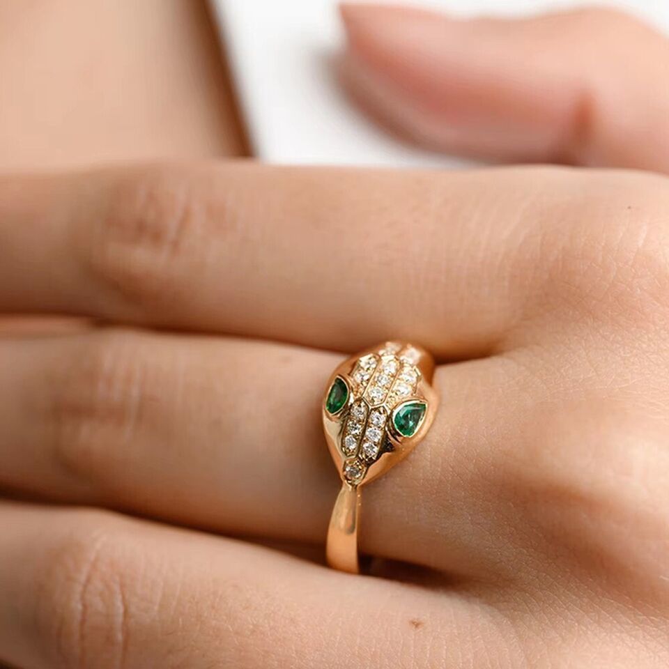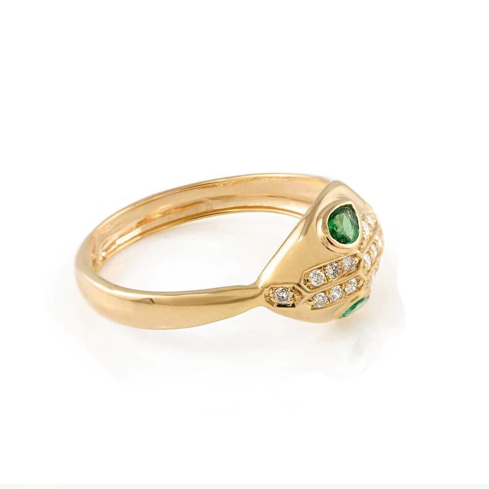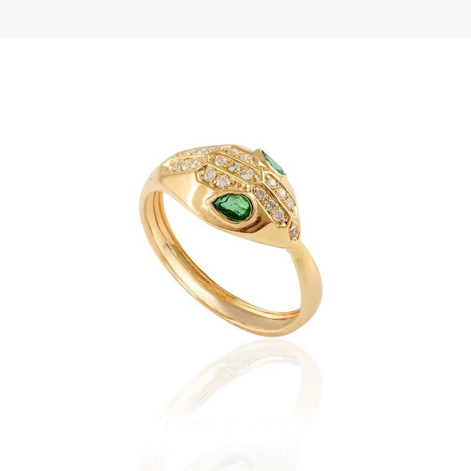1 ctw Lab Created Emerald & Diamond 14k Yellow Gold Plated Snake Engagement Ring