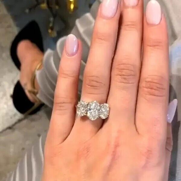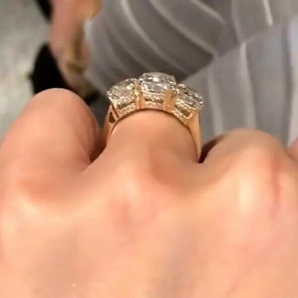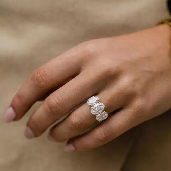 8Ct Oval Cut Moissanite 14K Yellow Gold Fn Three Stone Solitaire Engagement Ring