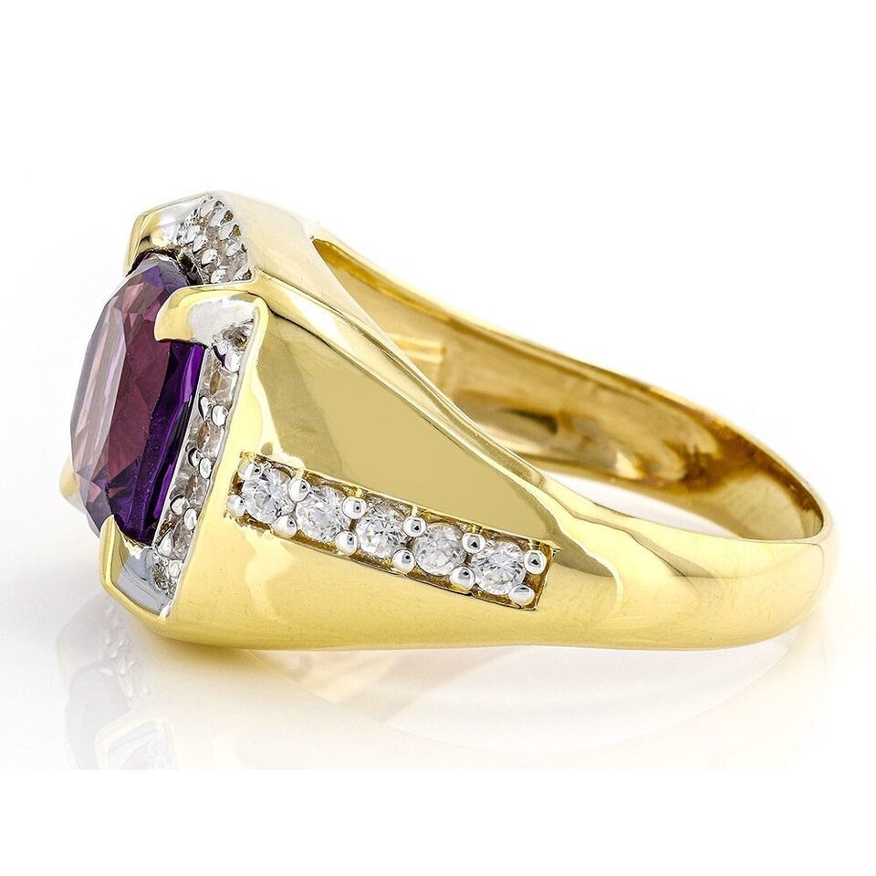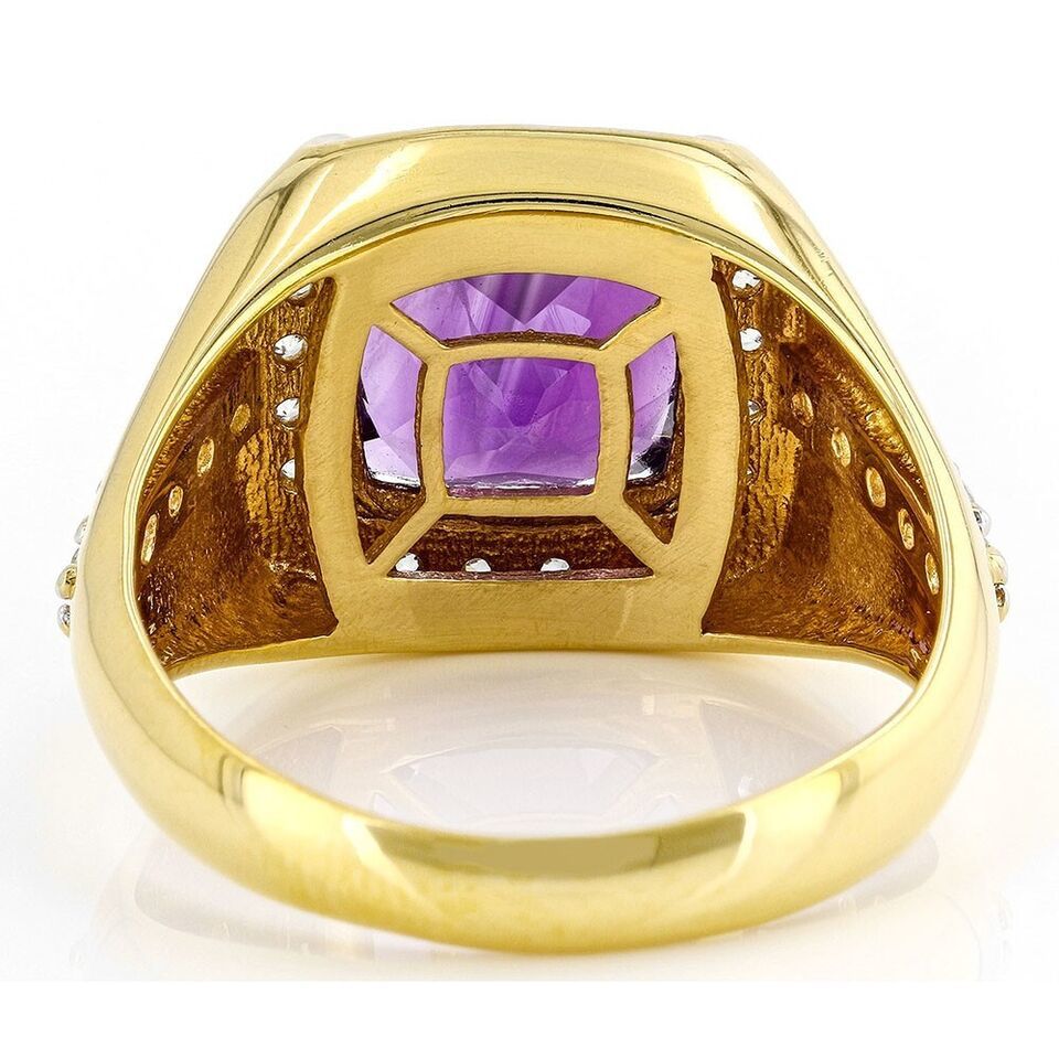 4.77 Ctw Cushion Cut Amethyst 14K Yellow Gold Plated Solitaire Ring For Men's