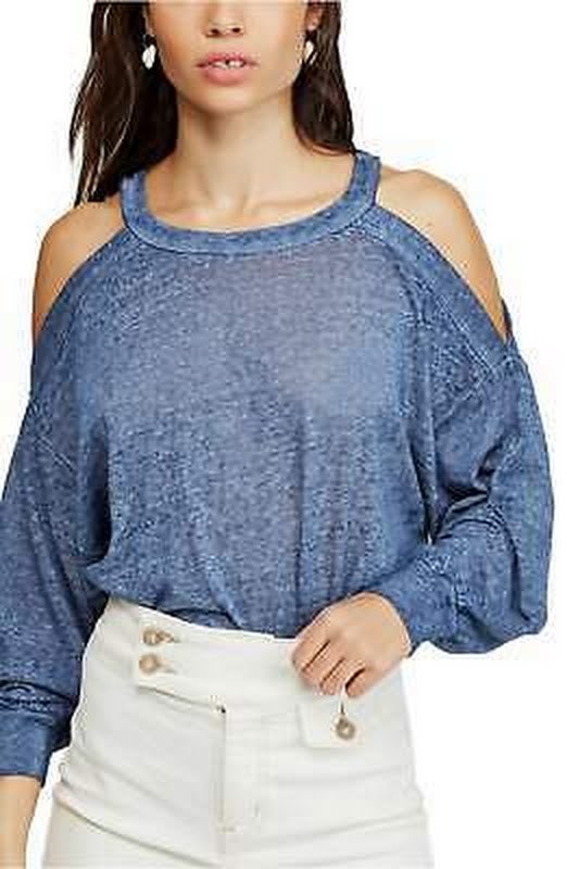 Free People Women's Chill Out Cold Shoulder Sweatshirt, Storm Blue ,Large