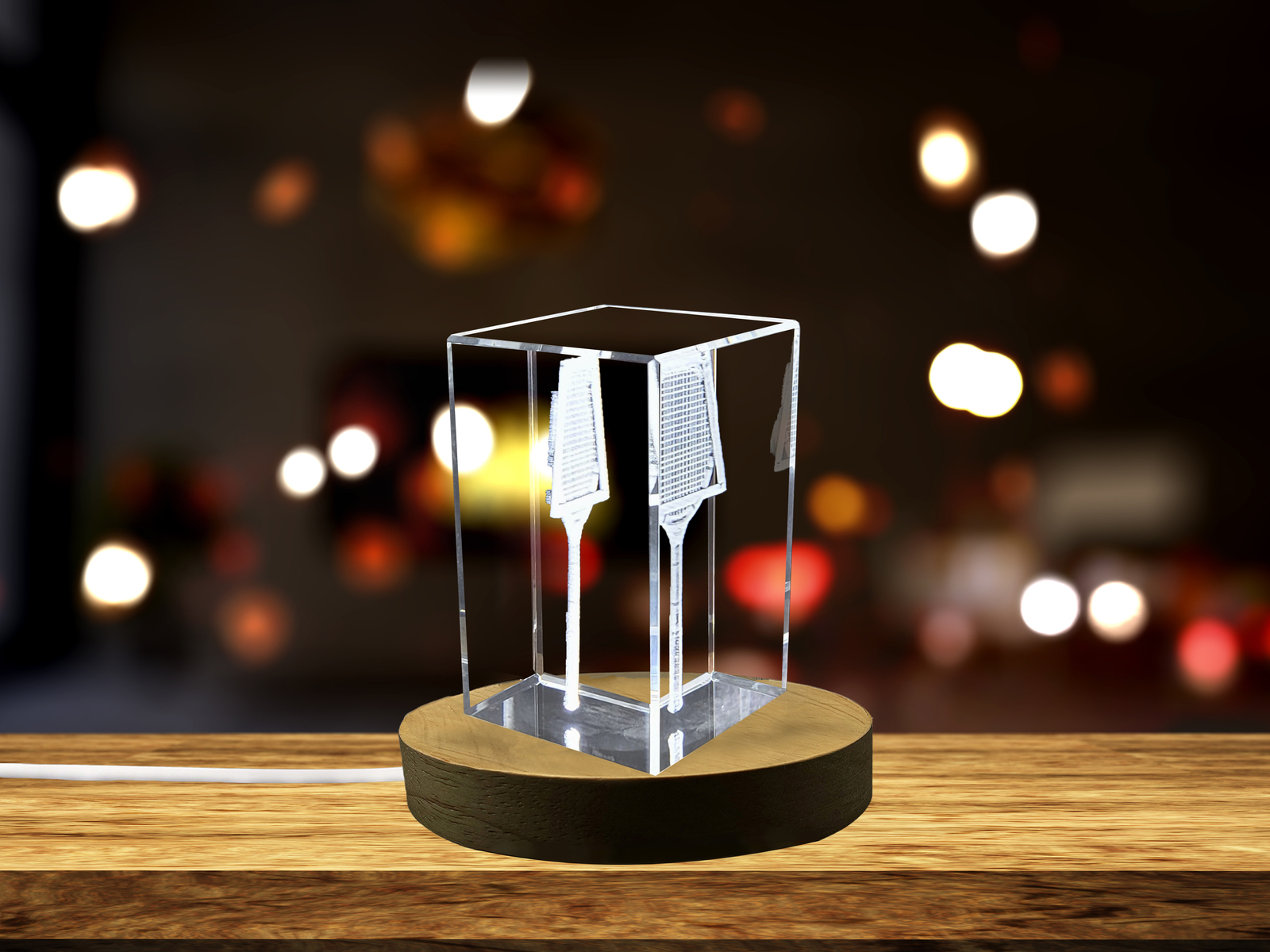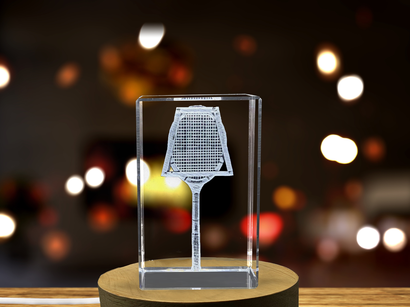 LED Base included | Vintage Tennis Racket Decor Crystal Engraved with Retro 3D