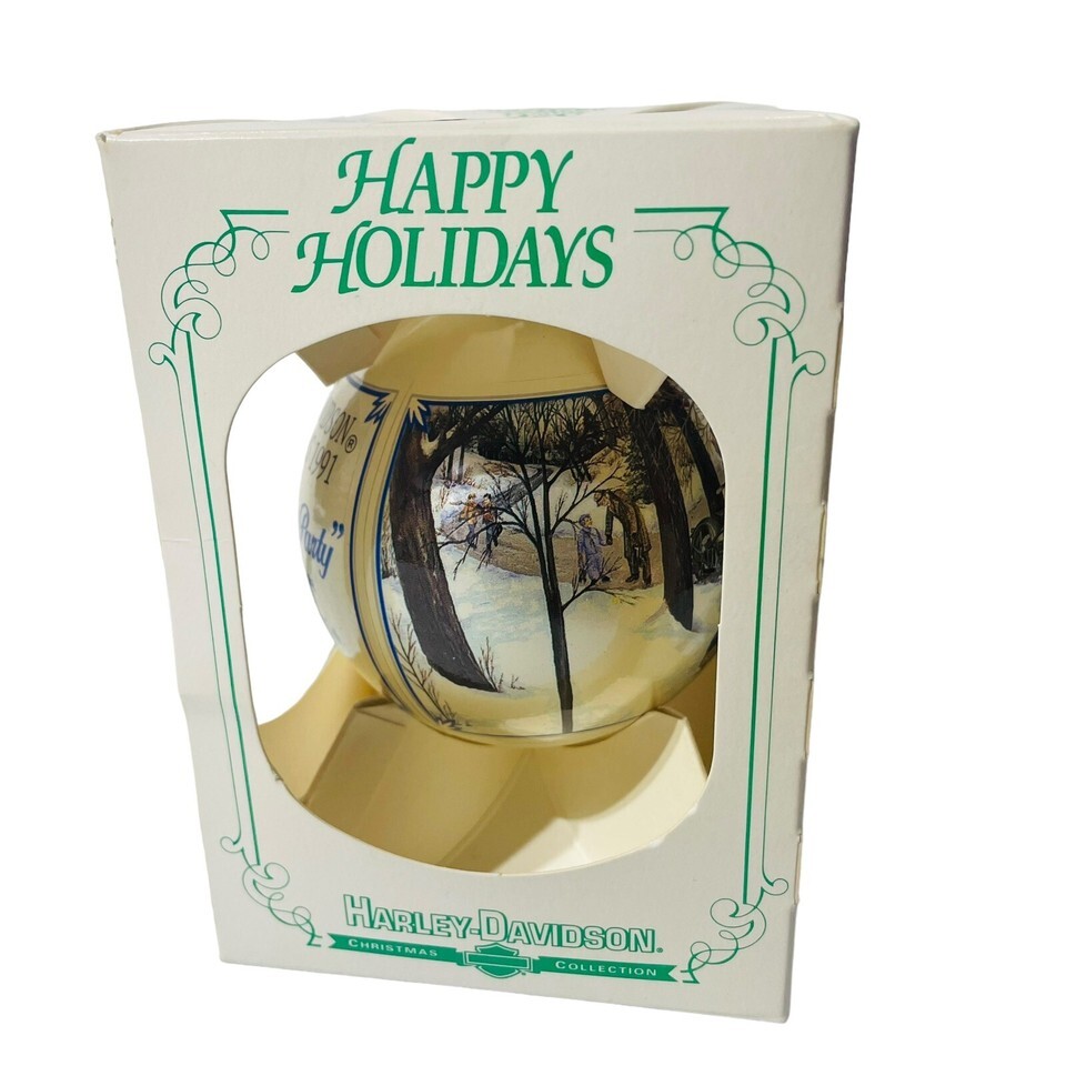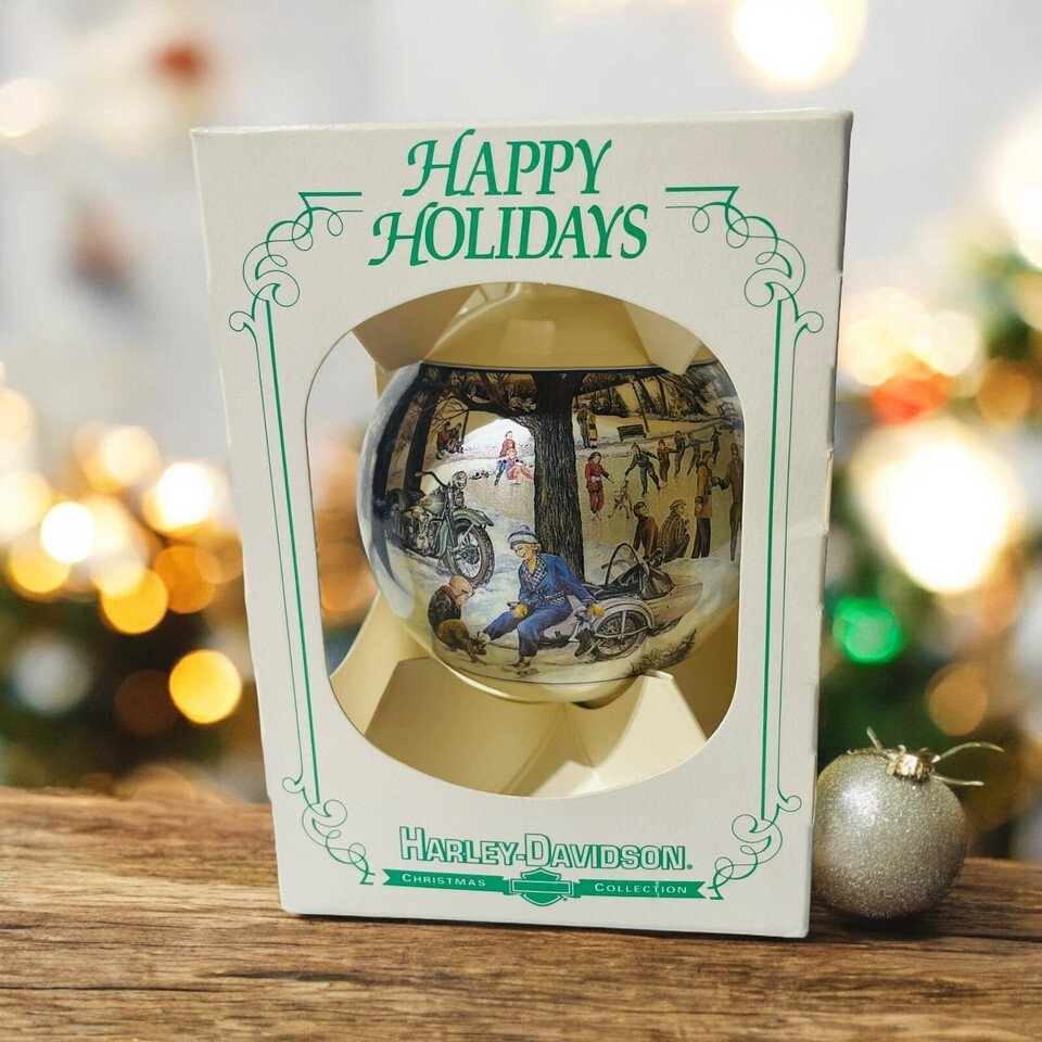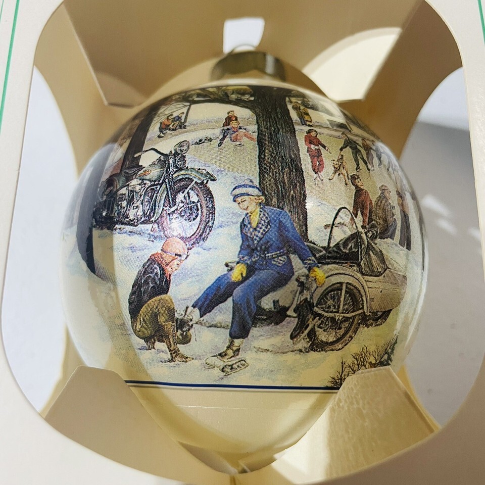 This vintage Harley Davidson Christmas ornament is a must-have for any collector. Made in the United States in 1991, this limited edition series I ornament features the title "THE SKATING PARTY" and measures approximately 4 inches in size. The ornament is designed to depict a festive scene from one of Harley-Davidson Motor Cycles' most popular models, the Skater.