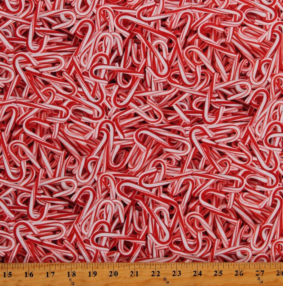 Cotton Candy Canes Christmas Food Seasonal Winter Holiday Candy Cane Packed Red Cotton Fabric Print by the Yard (HOLIDAY-CD2962-RED)