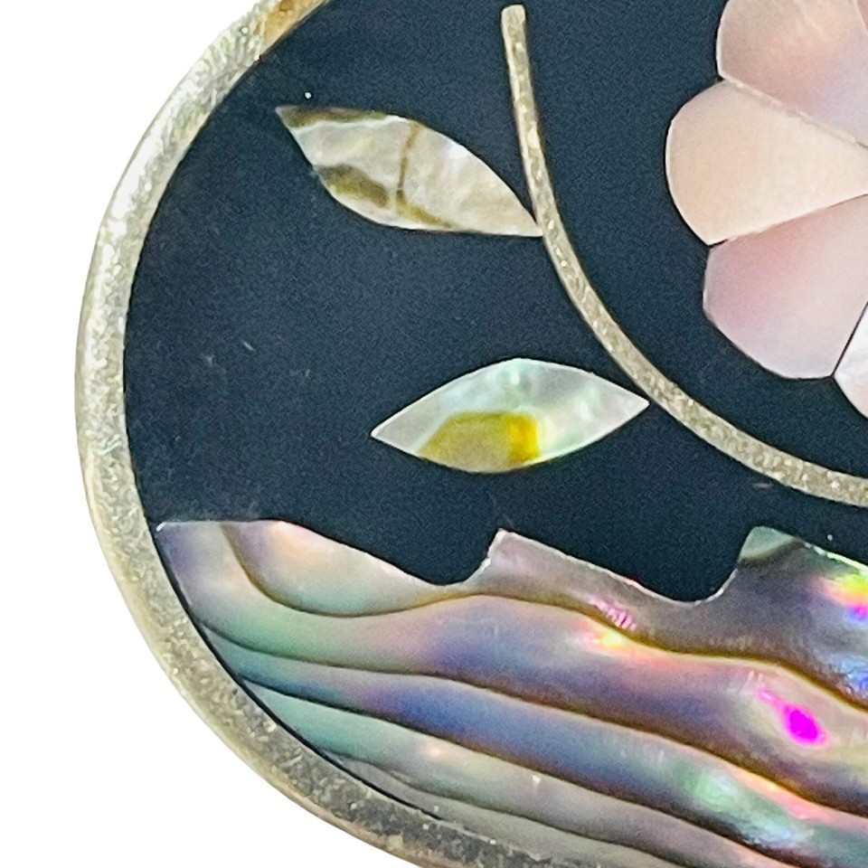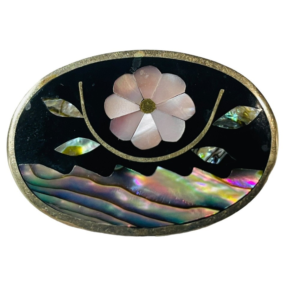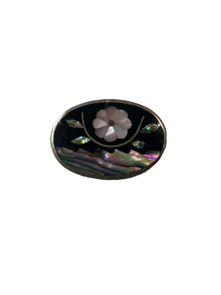 Beautiful Vintage Alpaca Mexican Silver Paua Abalone Shell Flower Brooch Pendant