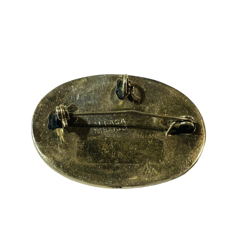 This stunning vintage Alpaca brooch pendant is a unique and beautiful piece of jewelry. The oval-shaped pendant features a gorgeous mother of pearl/paua shell in stunning black and green colors, with intricate enamel detailing on the silver-plated sterling silver base metal. The brooch is handmade and signed by the designer, and is a perfect gift for Mother's Day, anniversaries, birthdays, or Valentine's Day. The piece has a timeless beauty, and is sure to complement any outfit.