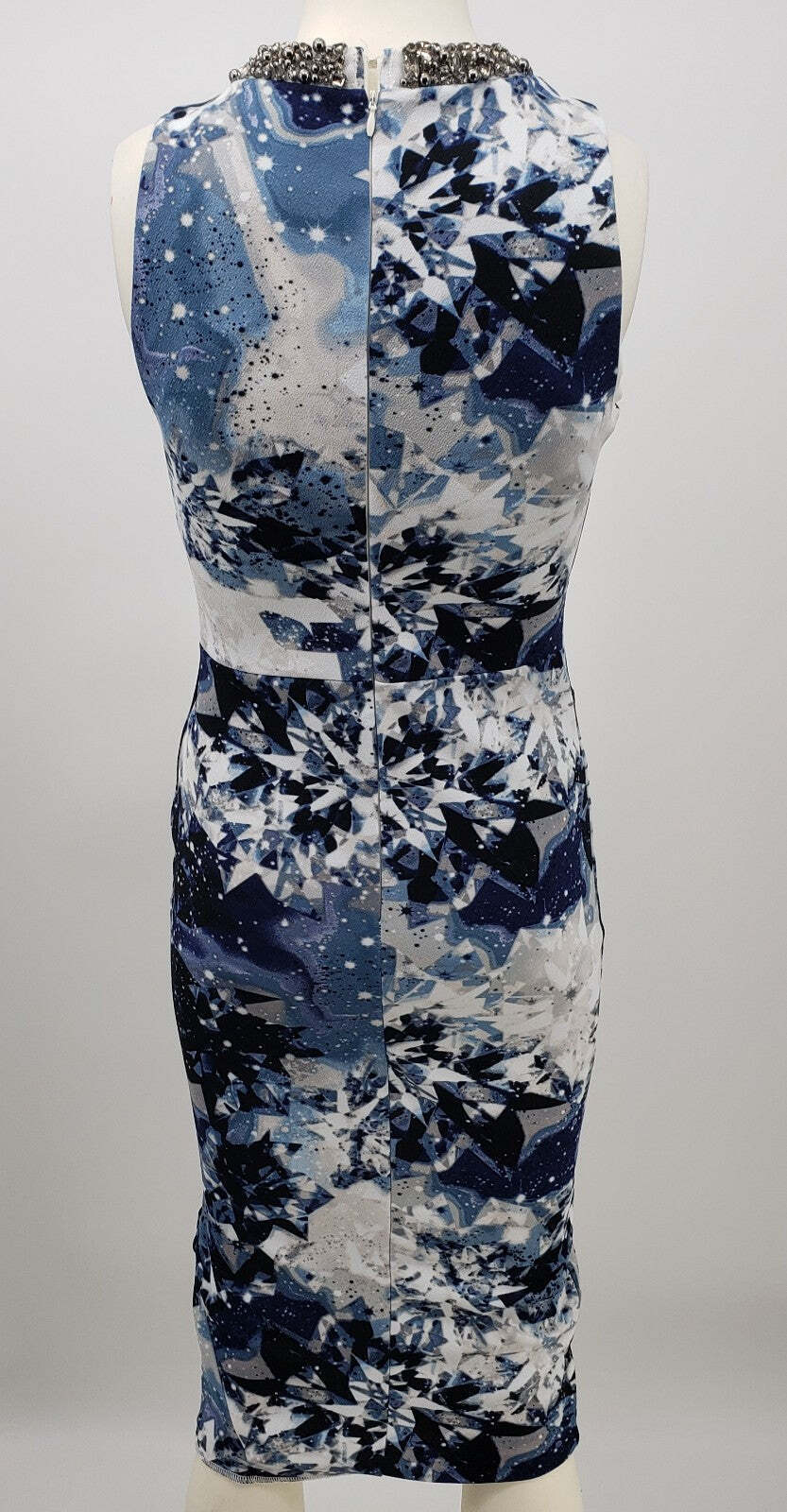 Jennifer Lopez Body Con Zippers Leopard Ombre Blue White Dress 4