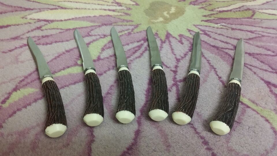 6 Vintage Federal Cutlery Steak Knives Set》Stag Type Handles》Made in Japan