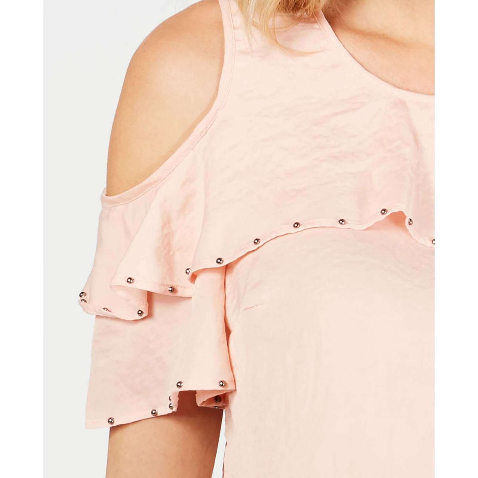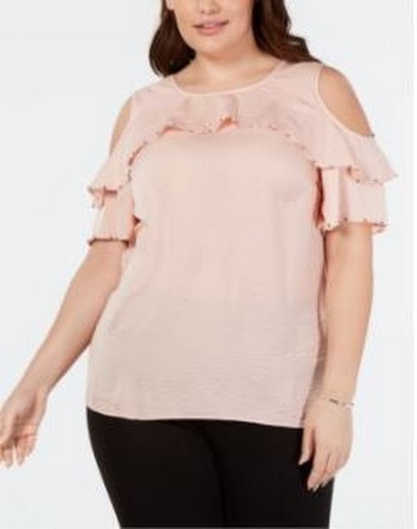 Item Notes: Decorated with a romantic ruffle, chic cold shoulder cutouts and silver-toned studs, this plus size top from JM Collection is ideal for the office or on a stylish night out. Approx. model height is 510 and she is wearing a size 1X Hits at hips; approx. 26-3/4 long Scoop neckline; keyhole and button closure at back Cold shoulder cutouts; ruffle overlay at front; embellishments at ruffle and sleeves Same Great Fit. Same Great Brand. New, Fresh Label Polyester Machine washable Scoop neckline; keyhole and button closure at back Cold shoulder cutouts; ruffle overlay at front; embellishments at ruffle and sleeves Same Great Fit. Same Great Brand. New, Fresh Label Polyester Machine washable Imported ome items may differ slightly from the photographs