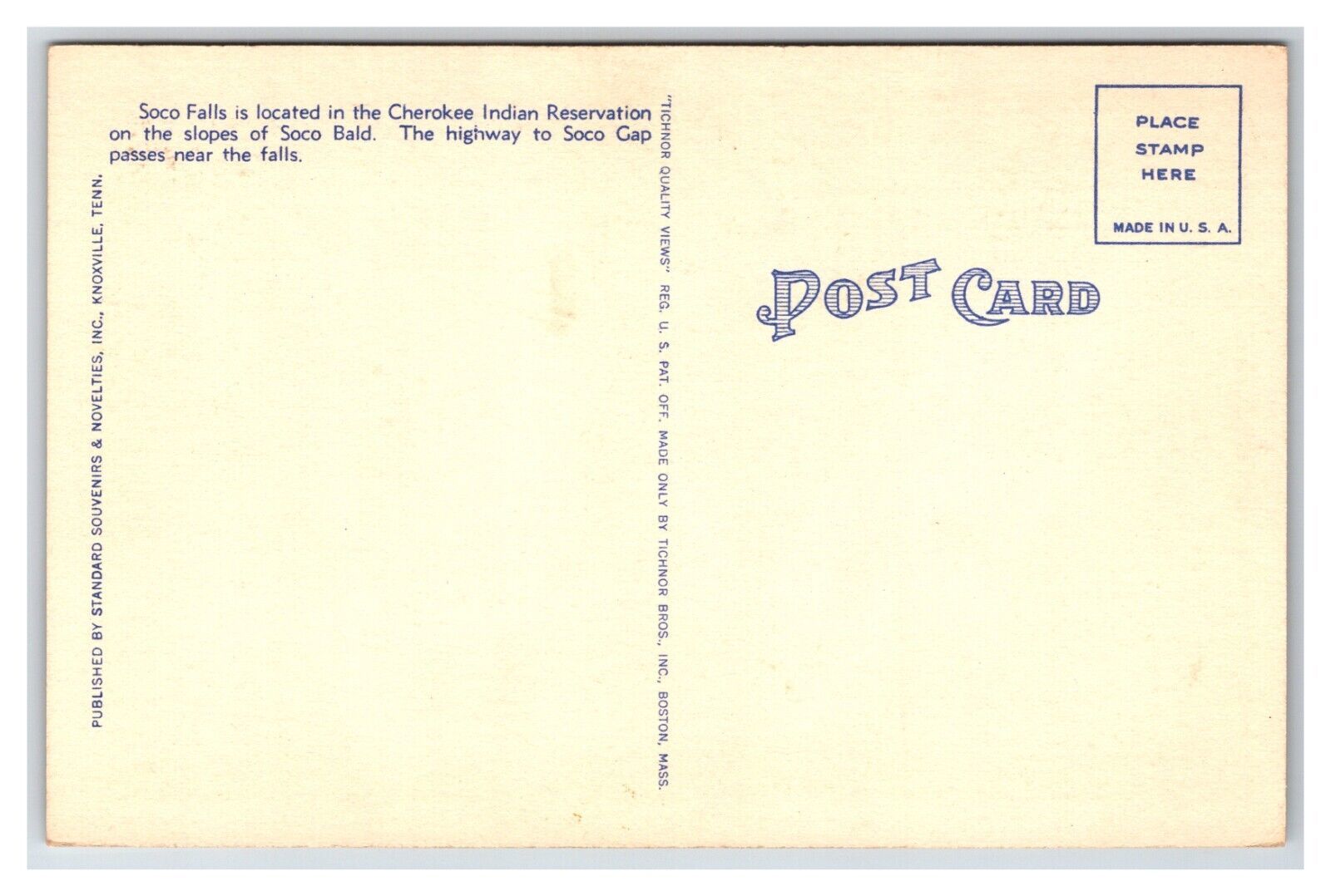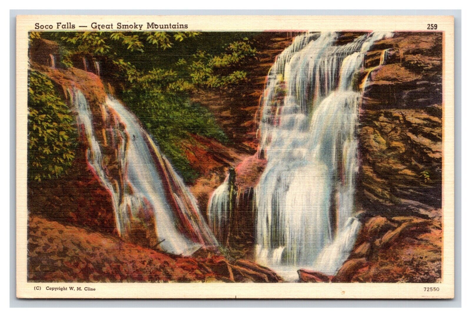 Soco Falls Great Smokey Mountains North Carolina NC UNP Linen Postcard Y10