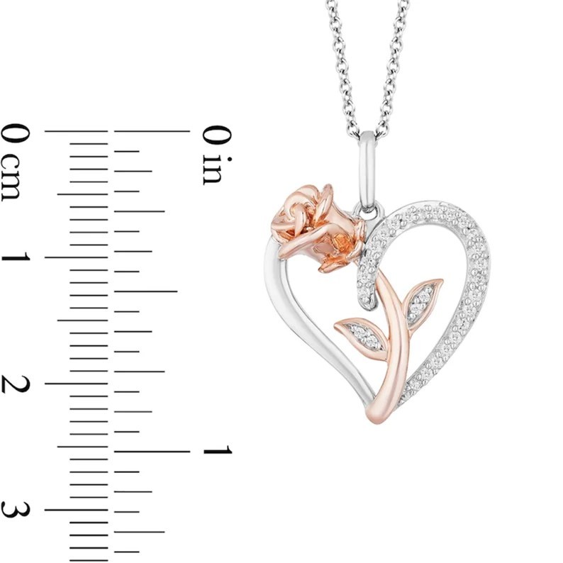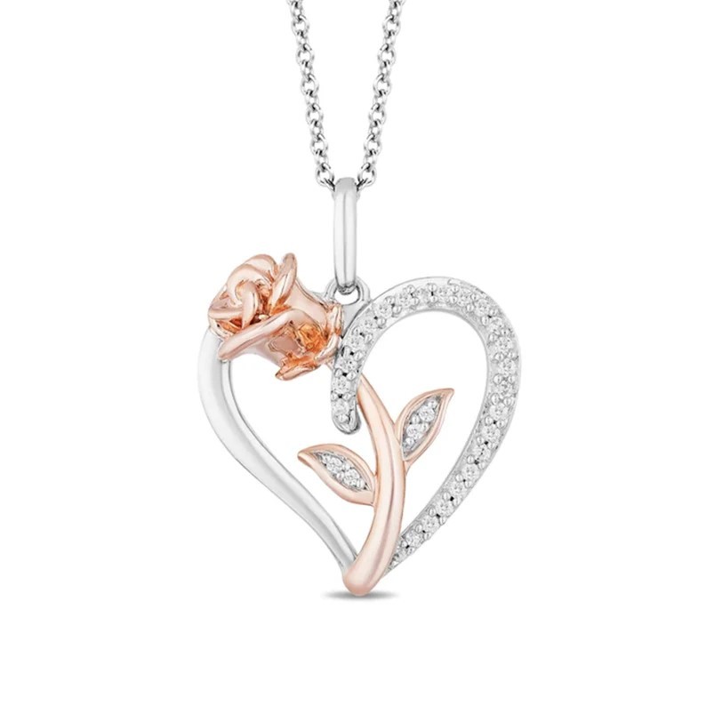 Enchanted Disney Belle Pendant, 0.1 Ct Simulated Diamond Rose Heart Pendant, Sterling Silver Pendant, Two Tone Pendant, Charm Pendant