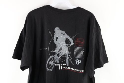 NOS Vtg 90s Ralph Lauren Mens XL Spell Out BMX Bike Short Sleeve T-Shirt Black