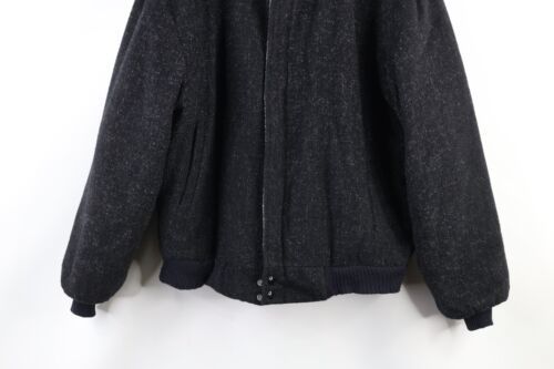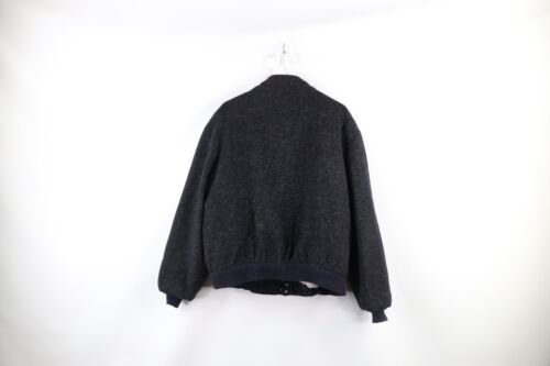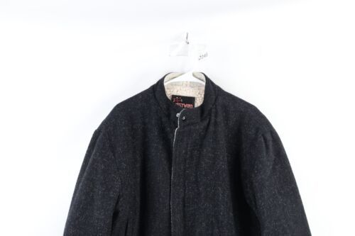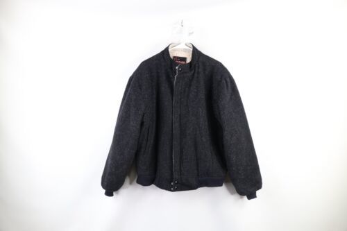 Vintage 70s Streetwear Mens XL Sherpa Fleece Lined Wool Bomber Jacket Black USA