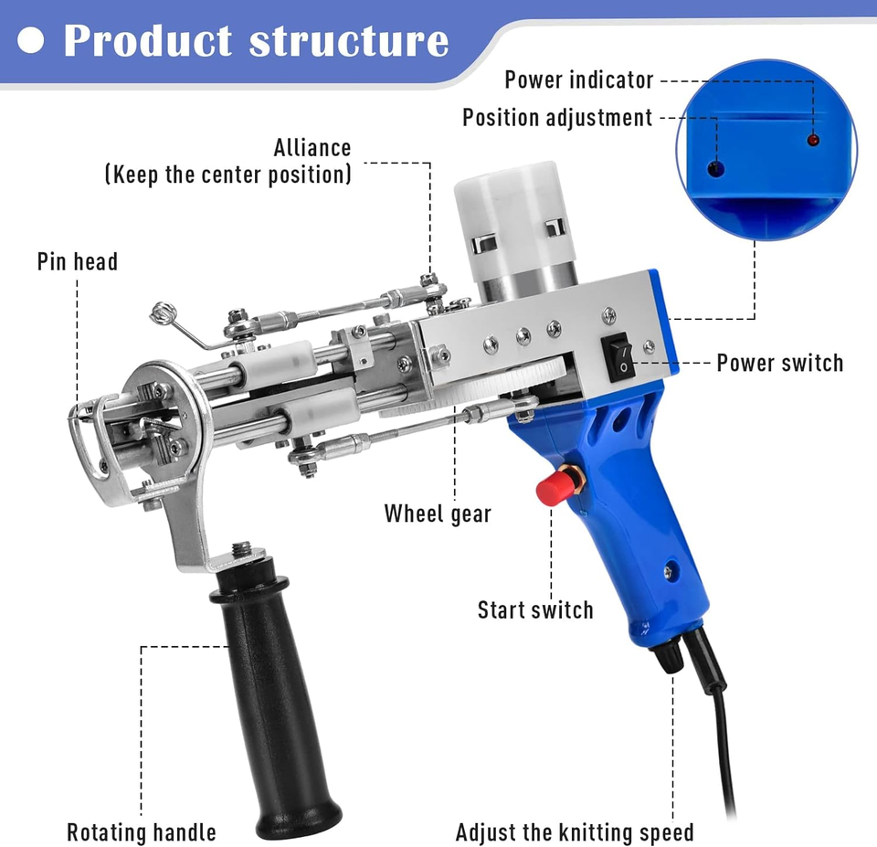 Cut Pile Rug Tufting Gun - Wuyule Electric Carpet Tufting Gun Kit,Rug Tufting Gun Machine Starter Kit 7-21Mm BLUE
