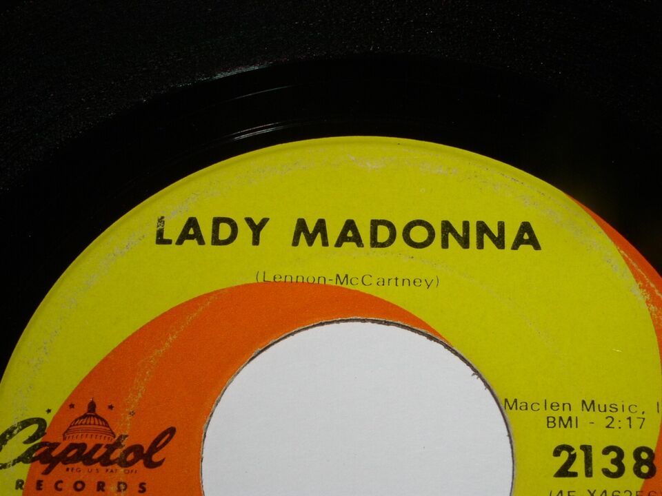 The Beatles Lady Madonna 45 Rpm Record Maclen On One Line Wide Font RARE VG+