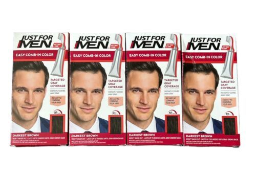 4 Boxes Just For Men A-50 Darkest Brown Easy Comb-In Color Hair Dye BENT BOX