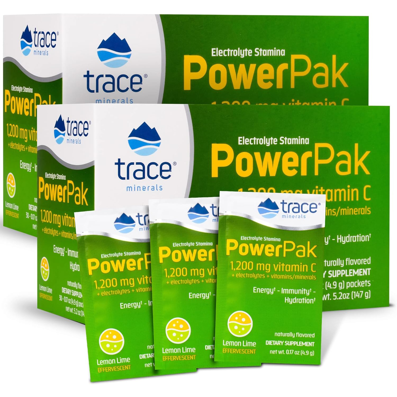 Trace Minerals Electrolyte Stamina PowerPak 1200 mg Vitamin C, Lemon Lime Effervescent, 30 Packets