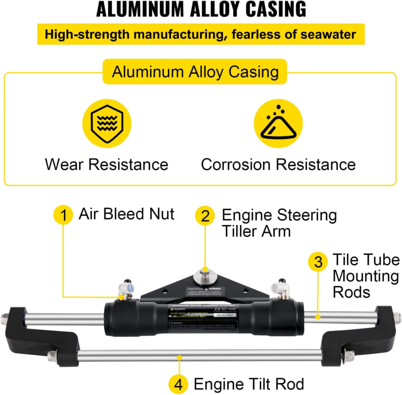 The front mount steering cylinder is designed for single and twin non-power assisted outboard engines up to 300HP. It offers excellent resistance to repeated compression set and is designed to better withstand the harsh marine environment. It is ideal for outboard-powered boats like the center console, offshore fishing, bass boats, flat boats, and many more.