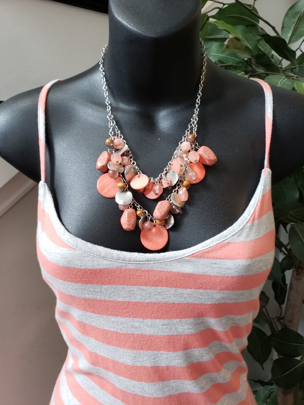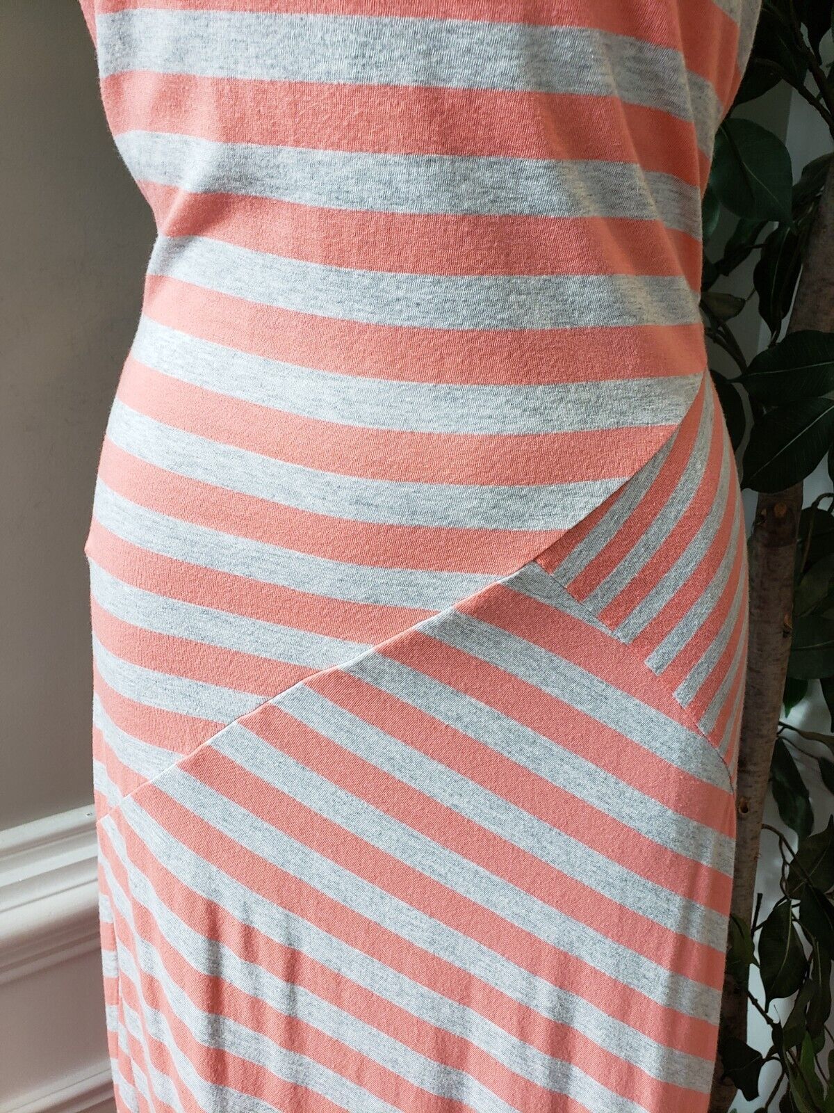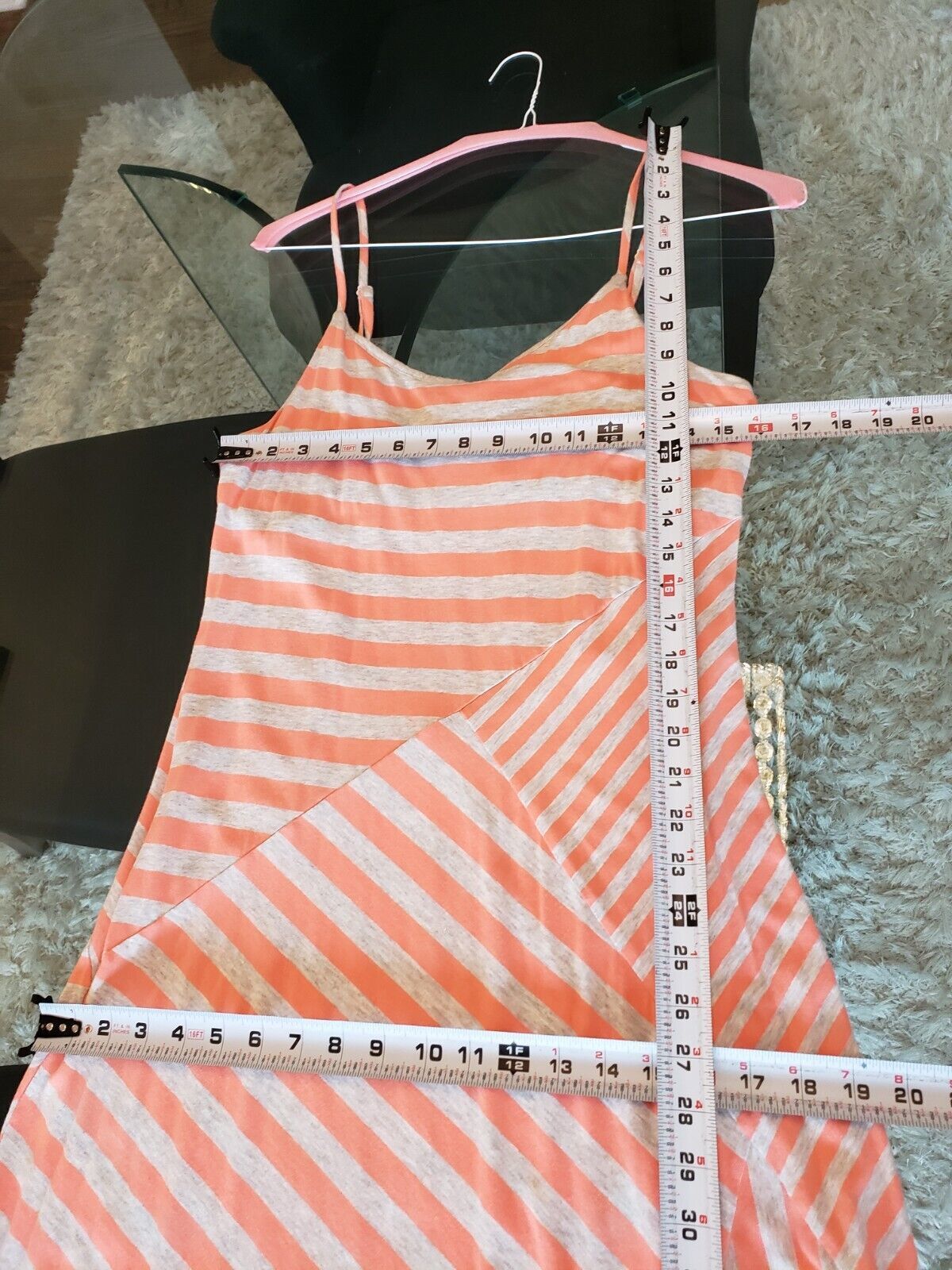 LC Lauren Conrad Women's White Orange Striped Spaghetti Strap Long Maxi Dress M.