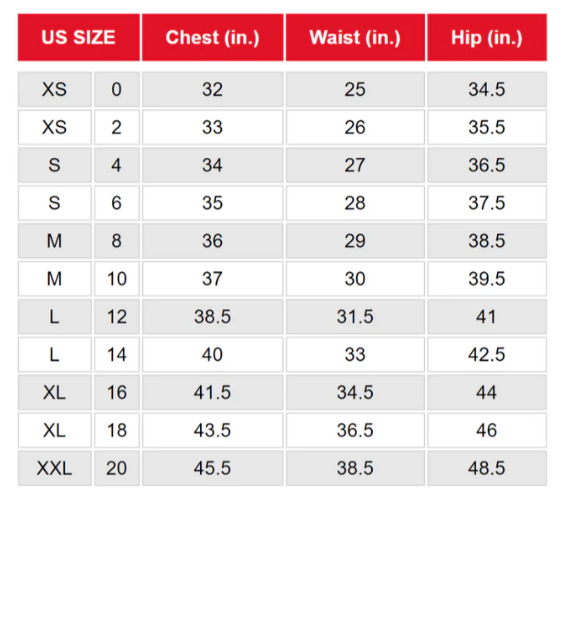 All measurements based on a size small