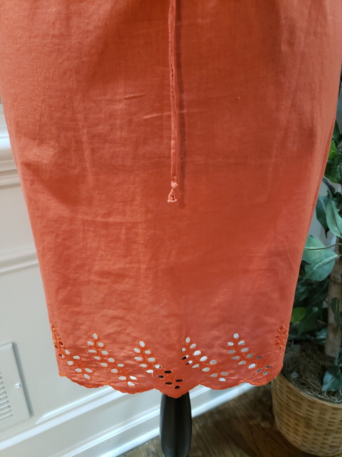 Madewell Women's Orange Drawstring Waist Eyelet Round Neck Fit & Flare Dress 4