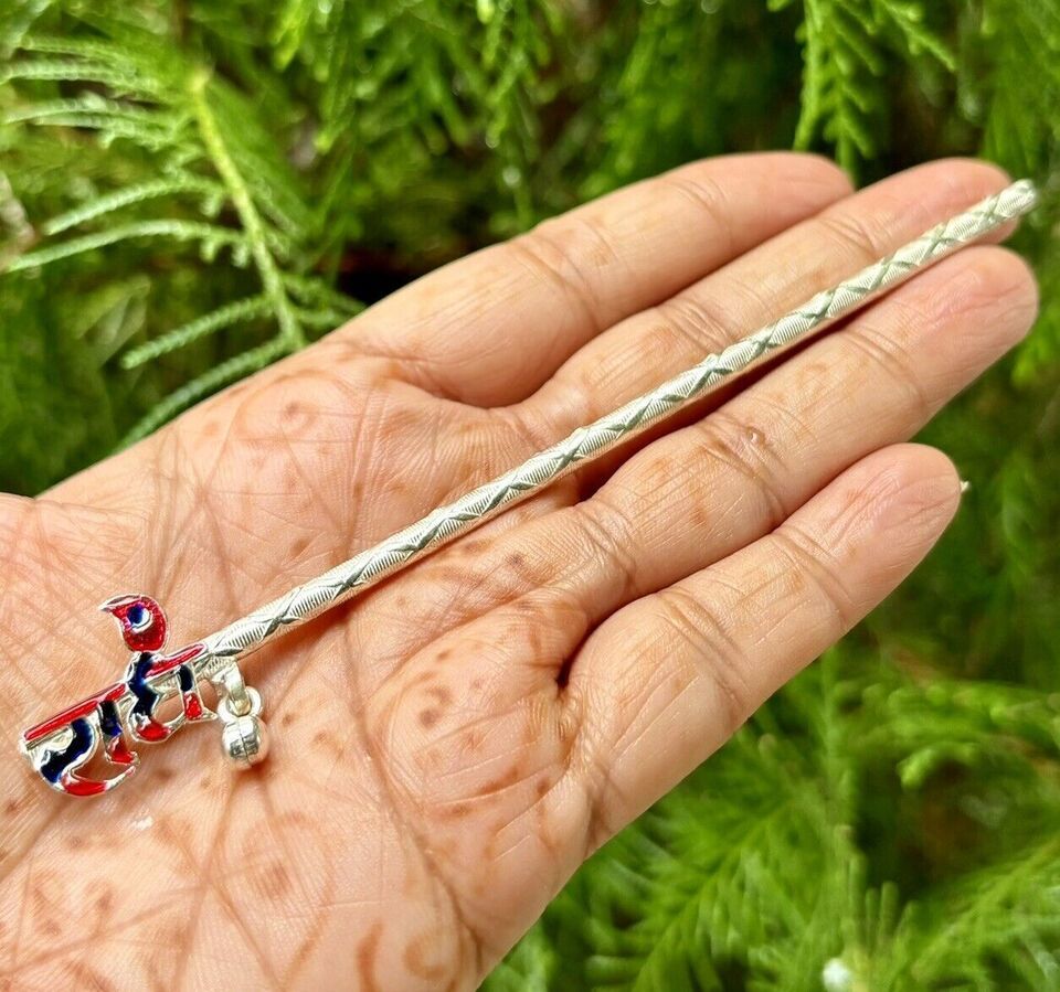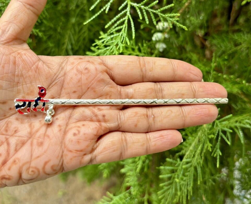 Silberner Designer-Dekormüll, Flote für Lord Krishna. Zur Verwendung für den Sringaar von Lord Krishna wahrend Janmashthami und anderen religiosen Anlassen