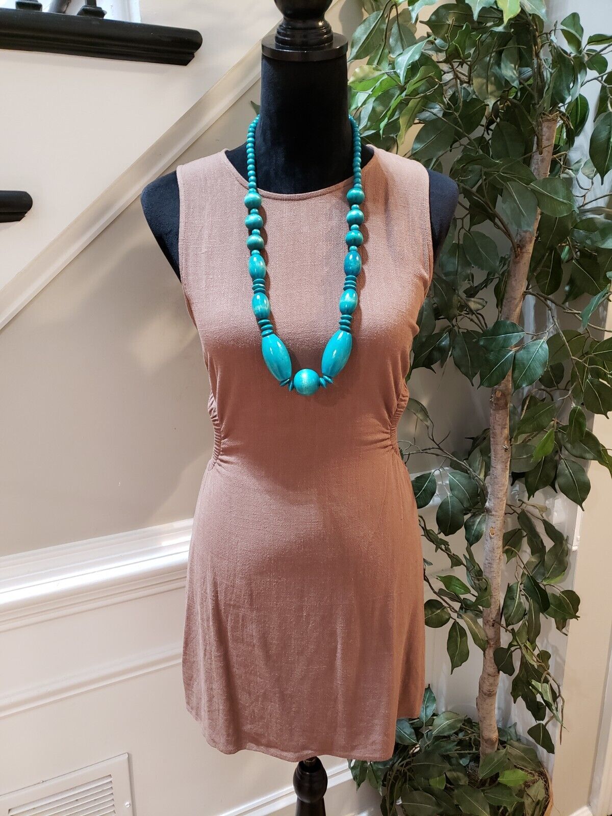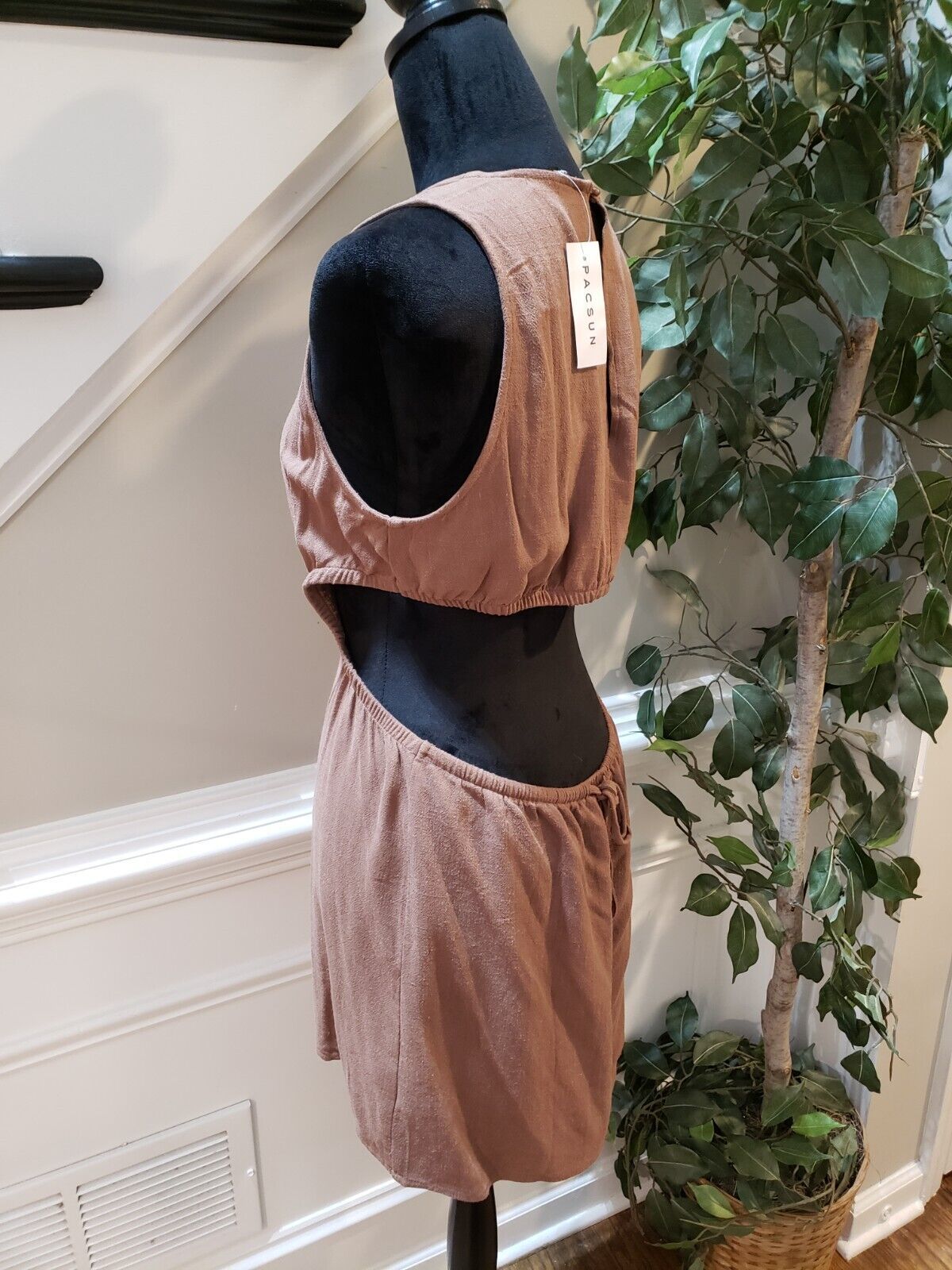 Kendall And Kylie Womens Brown Back Cut Out Round Neck Knee Lenght Shift Dress L