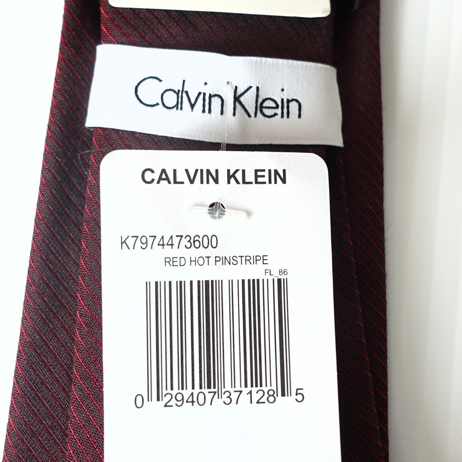 CALVIN KLEIN Red Hot Pinstripe Stripe Silk Blend Slim Tie