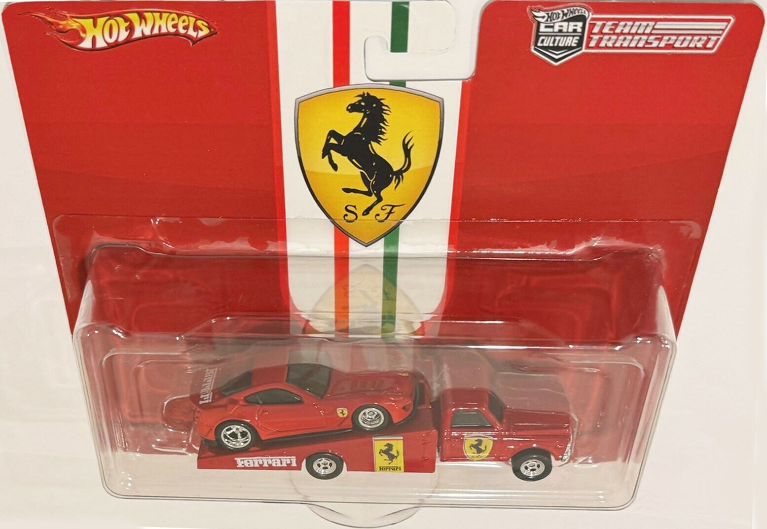 Custom Hot Wheels Team Transport FERRARI 599xx on the Ramp w/ Real Riders Real Rider Rubber Wheels 1:64 Scale Collectible Die Cast Model Car.
