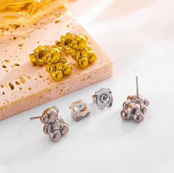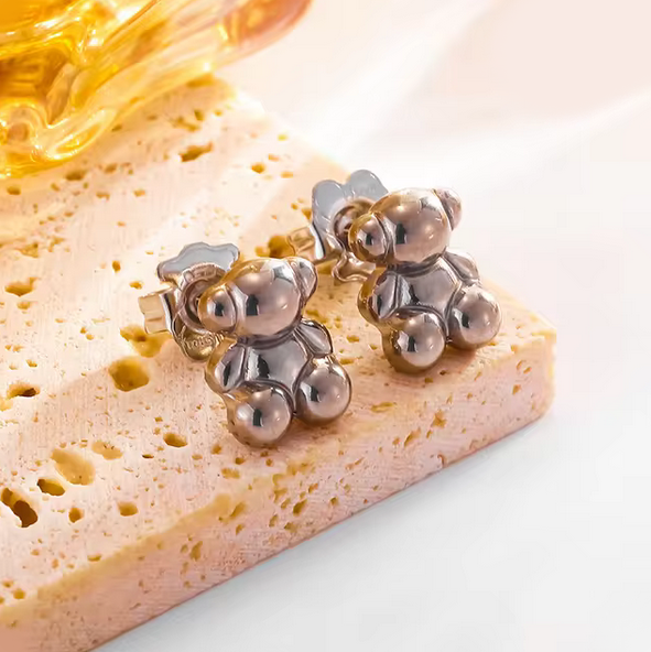 316L Stainless Steel Cute Little 3D Bear Pendant Necklace/Stud Earrings