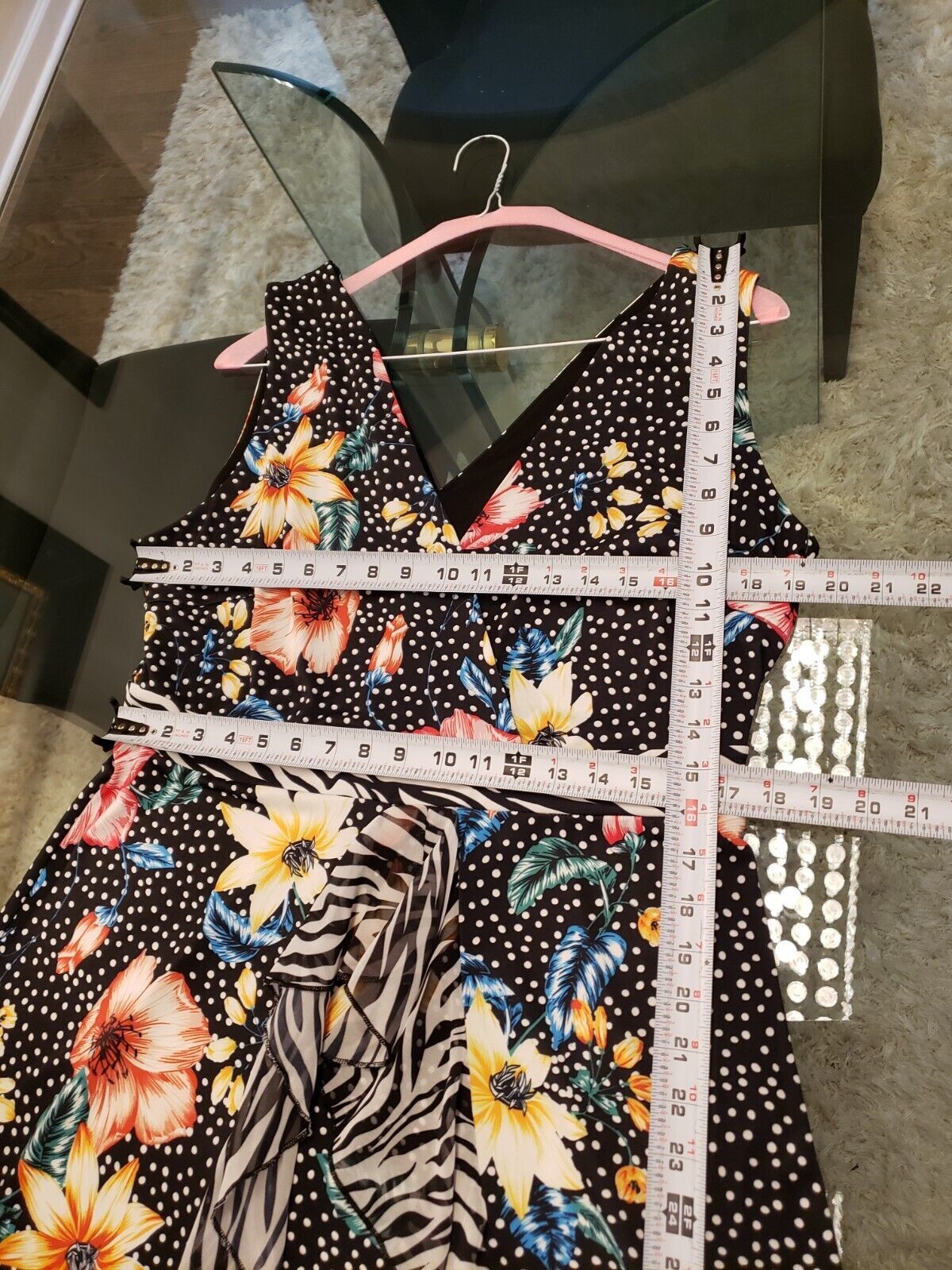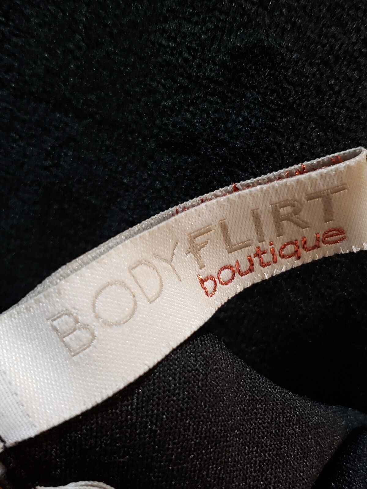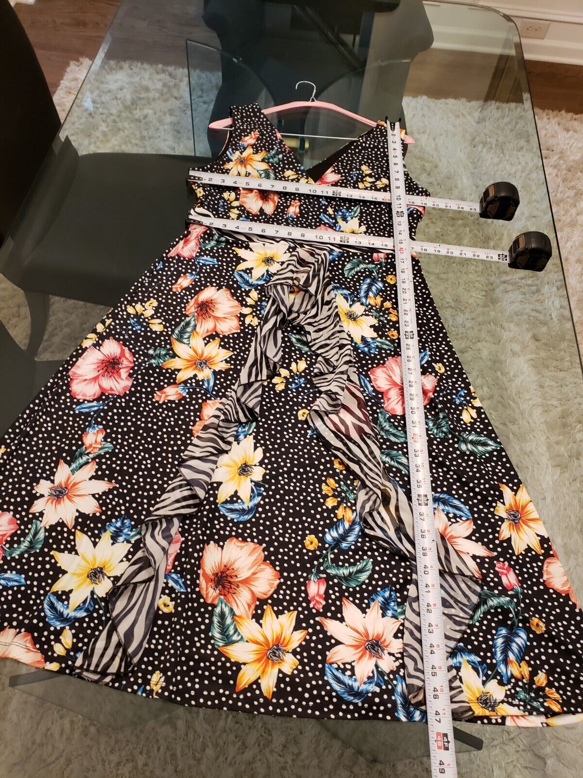 Bodyflirt Womens Black Floral Plunge V Neck Ruffle Trim Knee Length Dress Size L