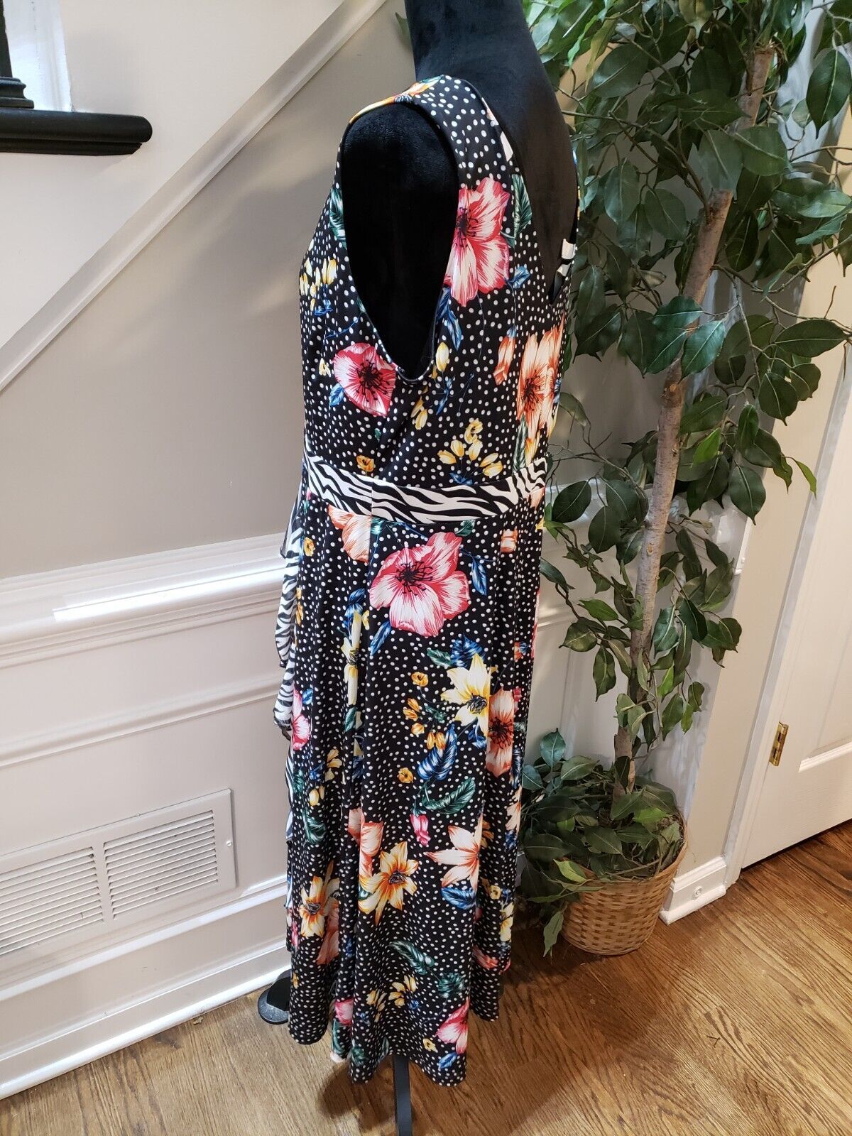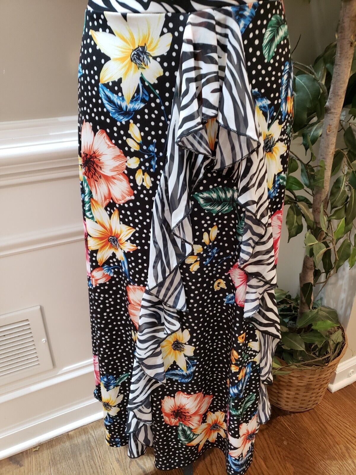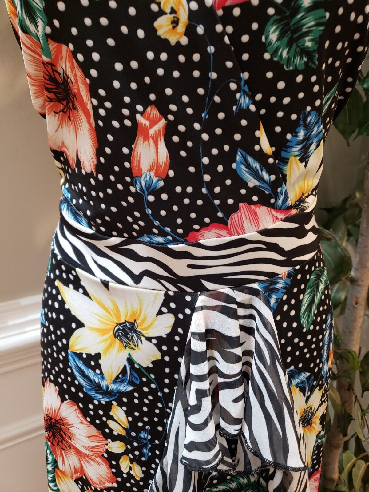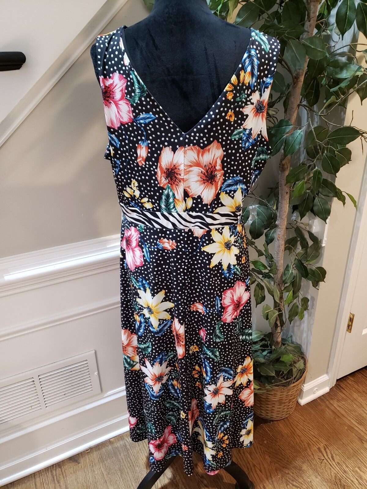 Bodyflirt Womens Black Floral Plunge V Neck Ruffle Trim Knee Length Dress Size L