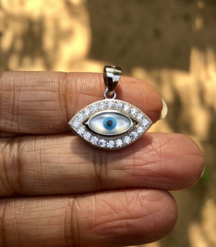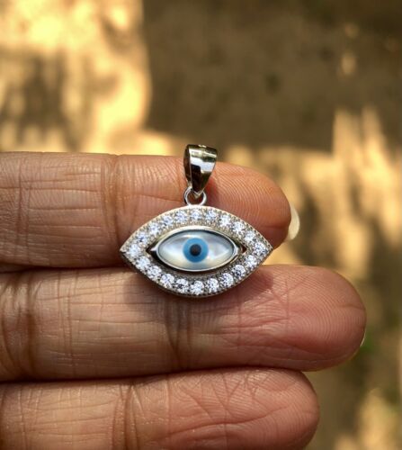 Ciondolo artigianale argento 925 per la protezione contro i malocchi, amuleto Nazariya, gioielli madre di Paerl 1 pz, forma degli occhi, fatti a mano, fatti a mano