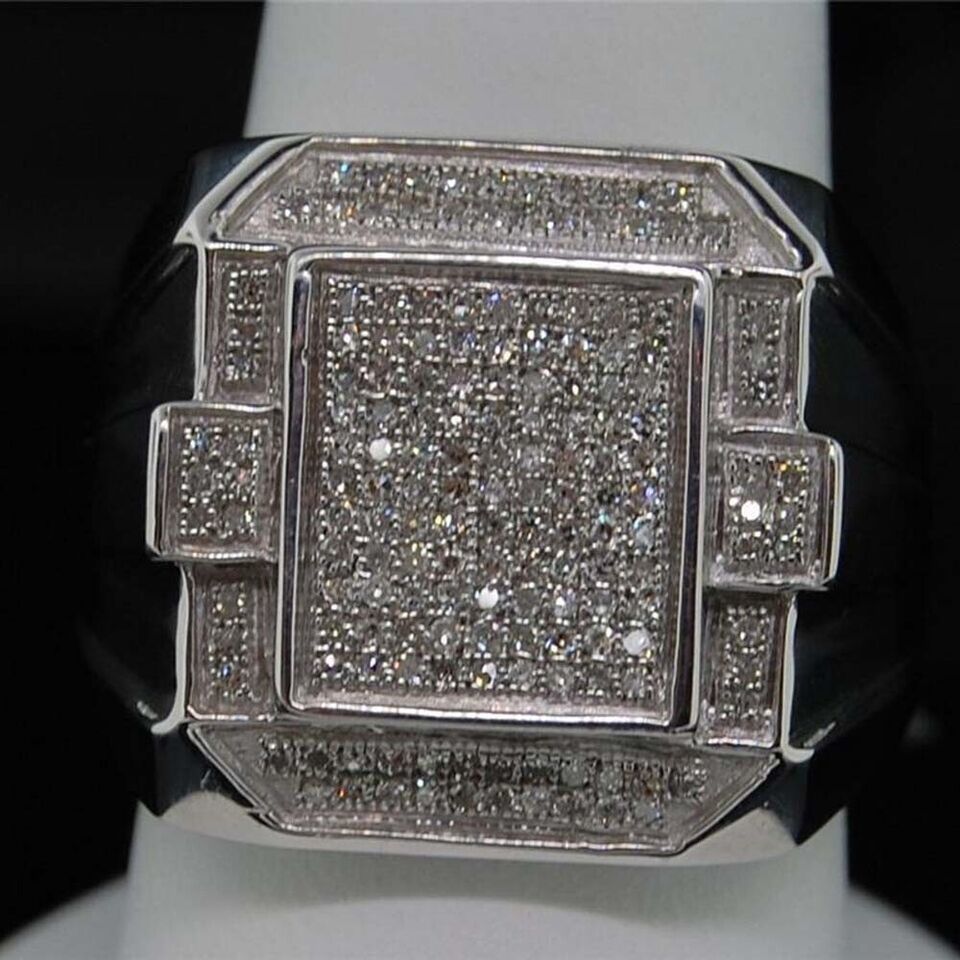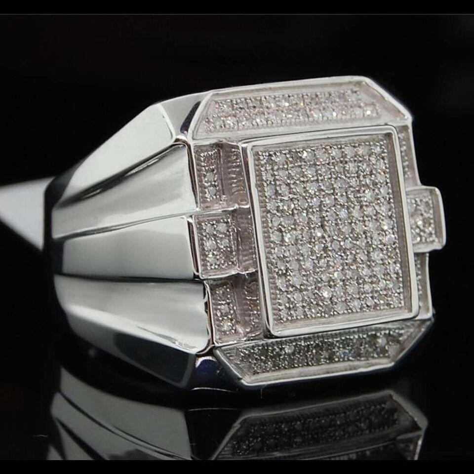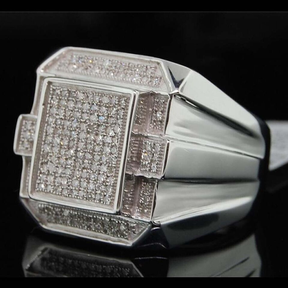 0.50 ctw Real Moissanite 14K White Gold Plated Statement Pinky Pave Men's Ring