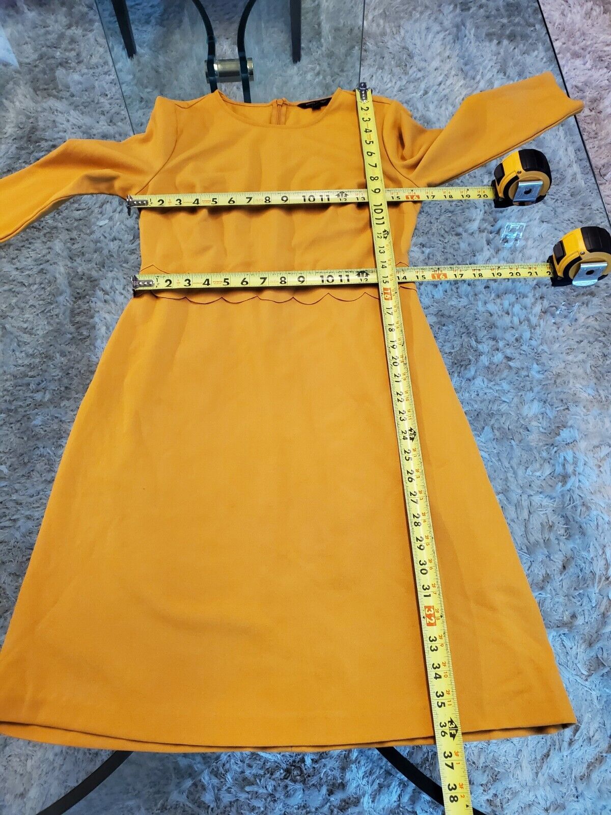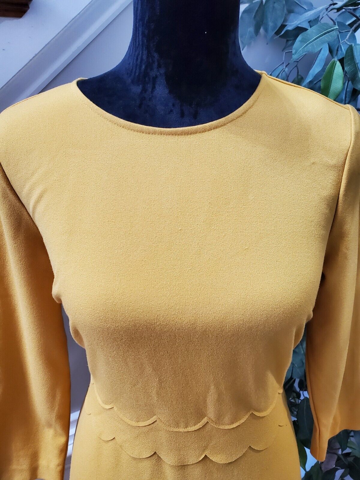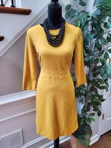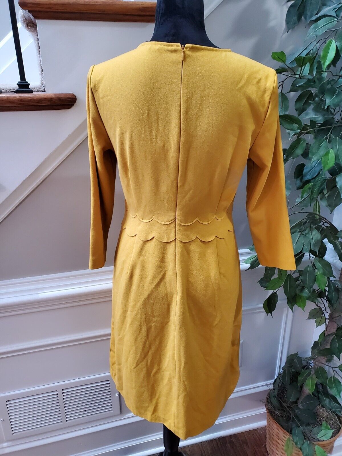 Banana Republic Mustard Yellow Solid Round Neck Long Sleeve Knee Length Dress 4