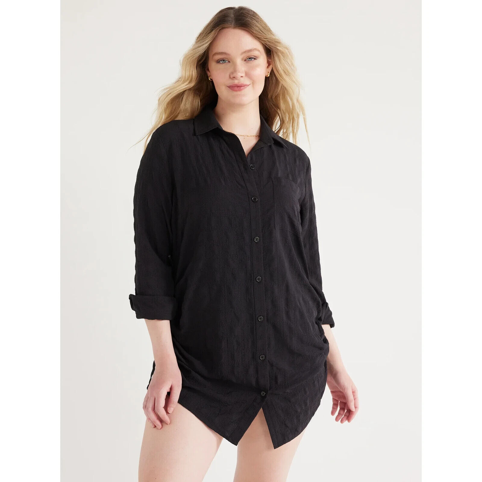 Time and Tru Women's Shirt Coverup with Long Sleeves, Black Size 3X(24W-26W)