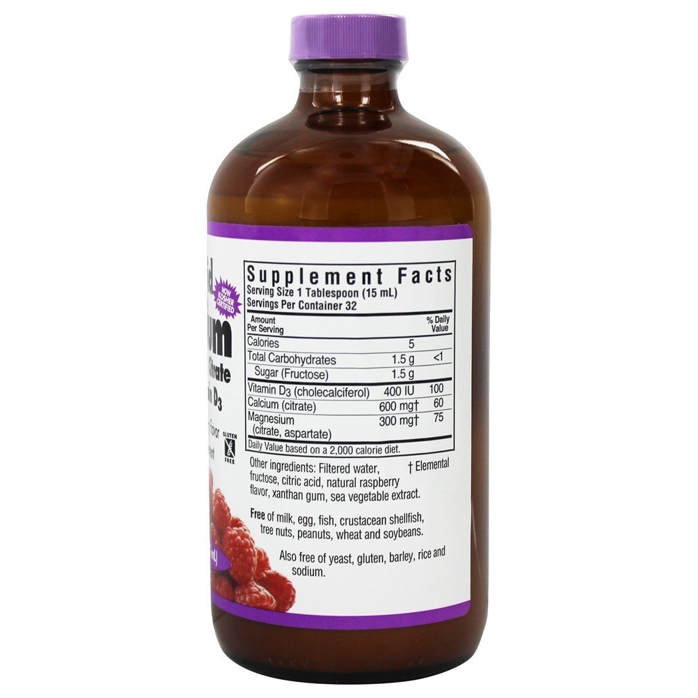 Bluebonnet Nutrition Liquid Calcium Magnesium Citrate Natural Raspberry Flavor, 16 Ounces