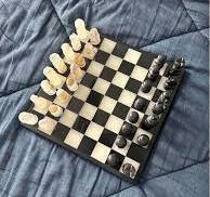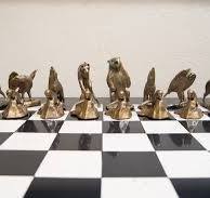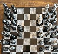 While your opponent thinks about the next move, enjoy the colors and patterns of this solid and handsome chess set.