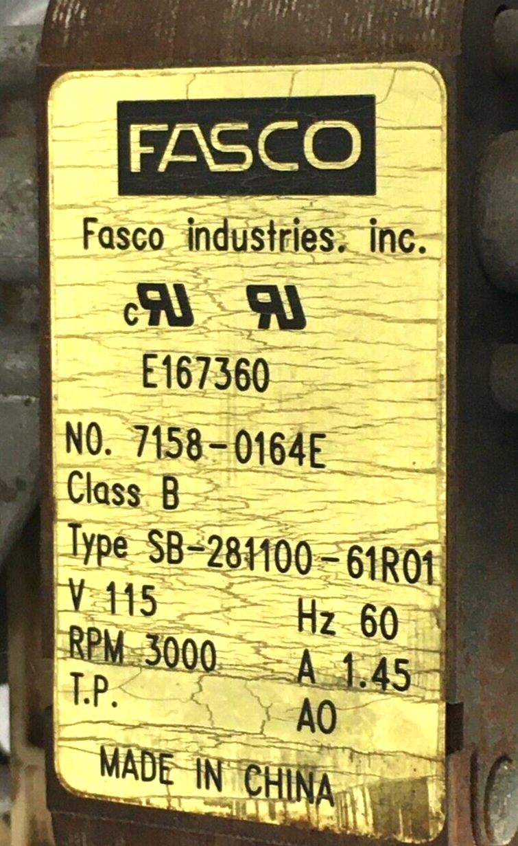 FASCO 70580261 Draft Inducer Blower Motor 7158-0164E 115V 3000 RPM used #MK910