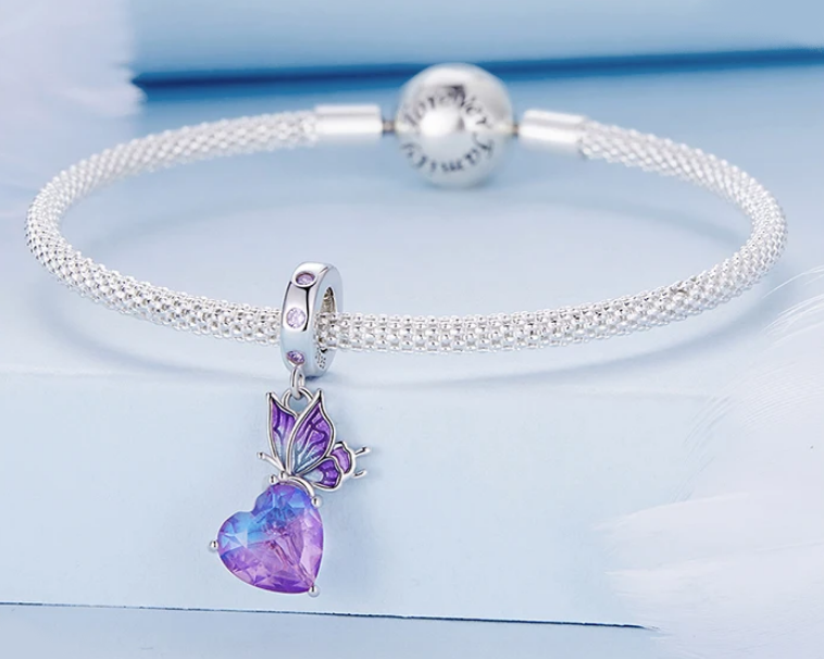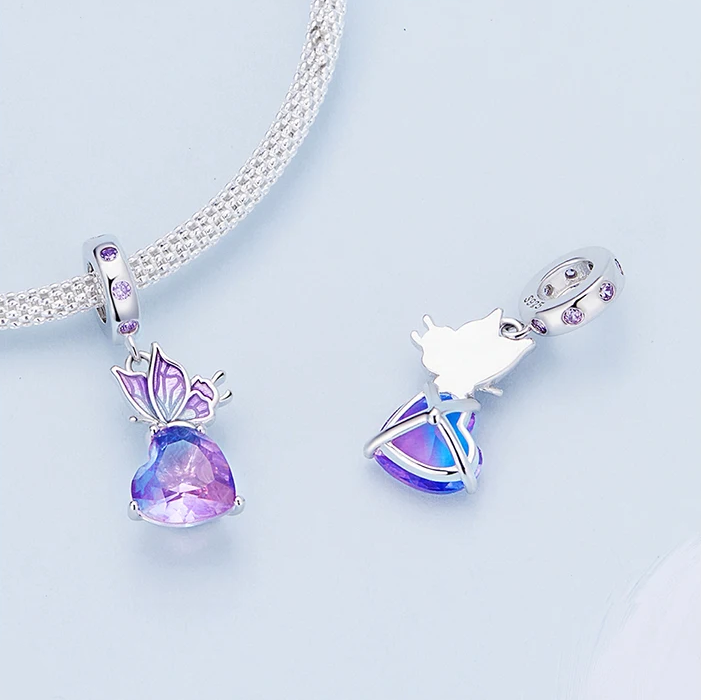 Platinum 925 Sterling Silver Gradient Butterfly Eternal Heart Charm Pendant
