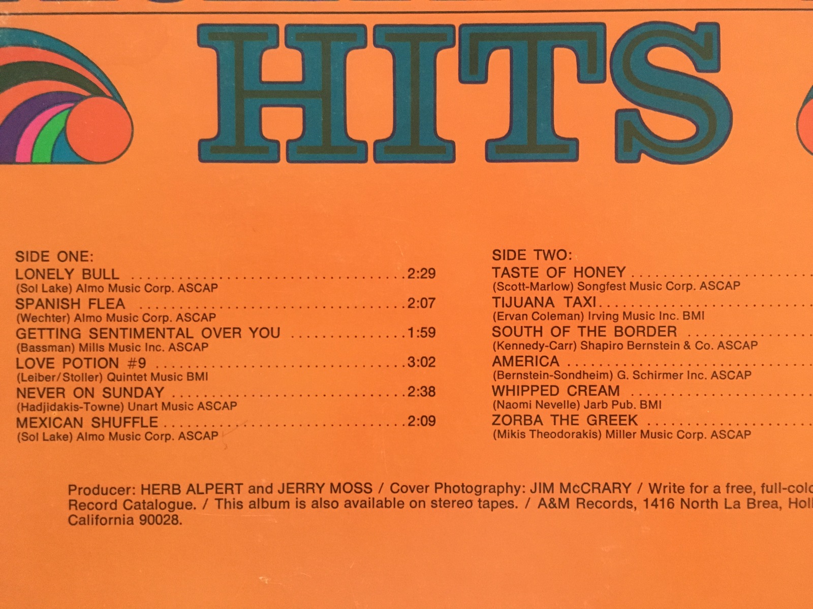Greatest Hits was released during Alpert's four-year sabbatical from performing, when he concentrated instead on producing records for other artists signed to his A M label.