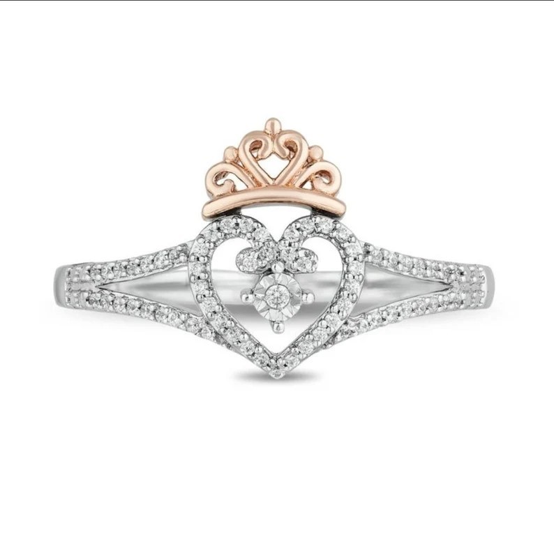 Enchanted Disney Fine Jewelry Stone Crown Over Heart Ring 1/0 ct. t.w. in 925 Sterling Silver