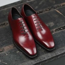 Handmade Men's Chisel Toe Burgundy Cowhide Leather Whole Cut Oxford Dress Shoes