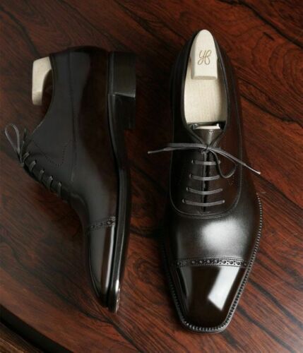 Handmade Men's Brown Genuine Cowhide Leather Oxford Cap Toe Dress Formal Shoes