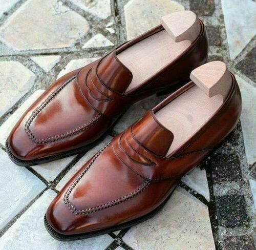 New Handmade Men's Brown Leather Loafer Moccasin Dress Formal Shoes For Men